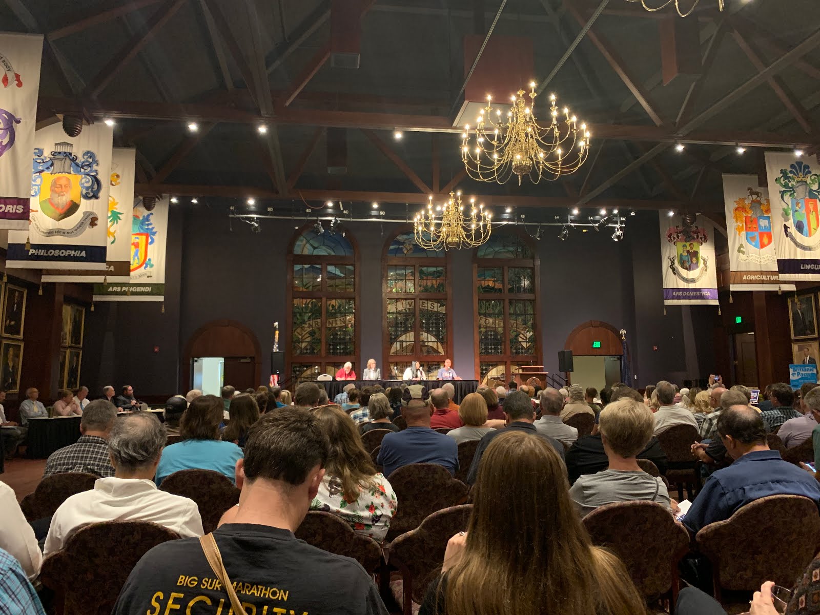 To get to know the candidates running for Cedar City Council, we attended the Meet-and-Greet event this week at the Great Hall at Southern Utah University. As we entered the room, we immediately noticed the banners representing the core principles of SUU and paintings of past university presidents. It was an impressive room.