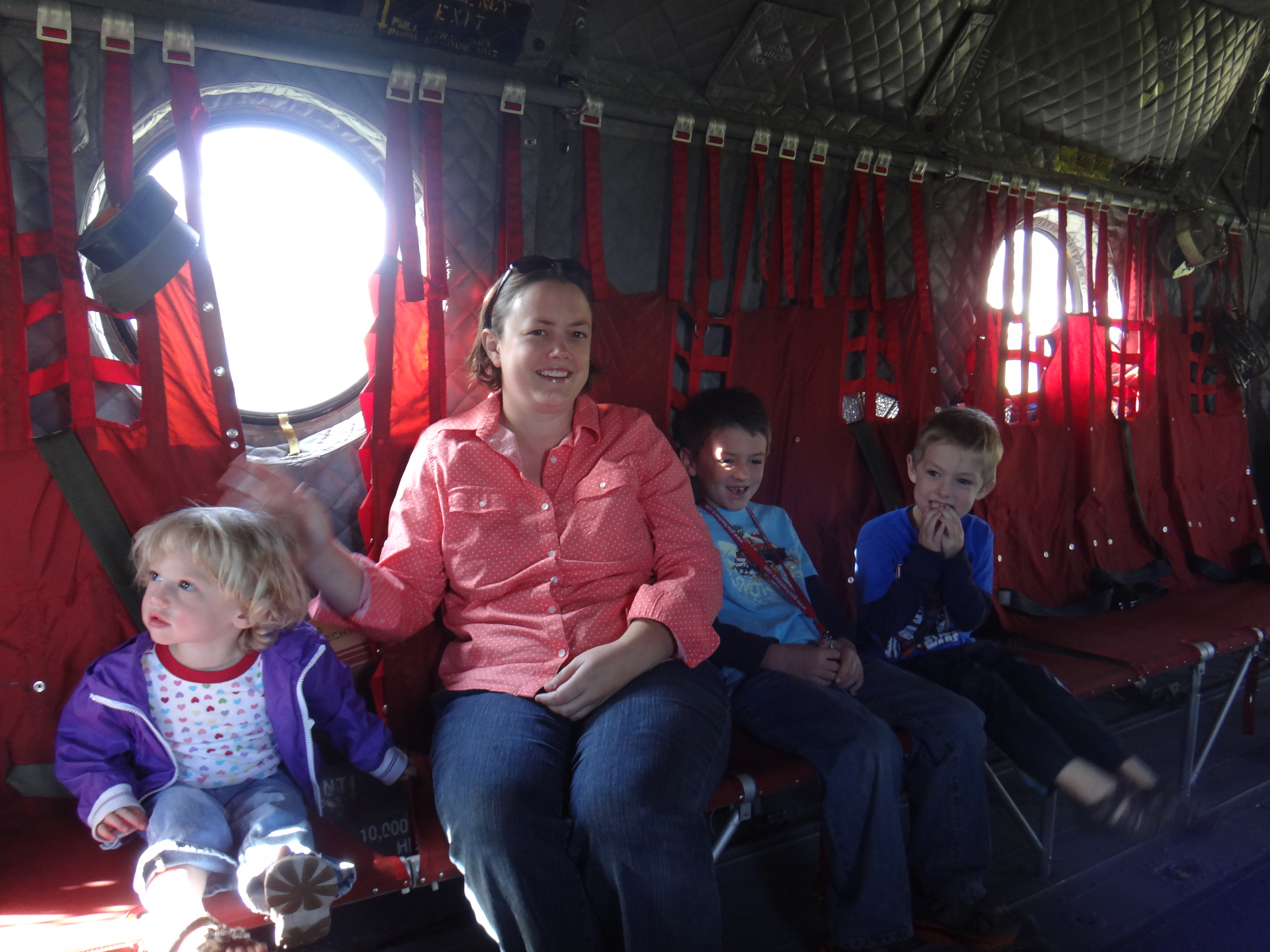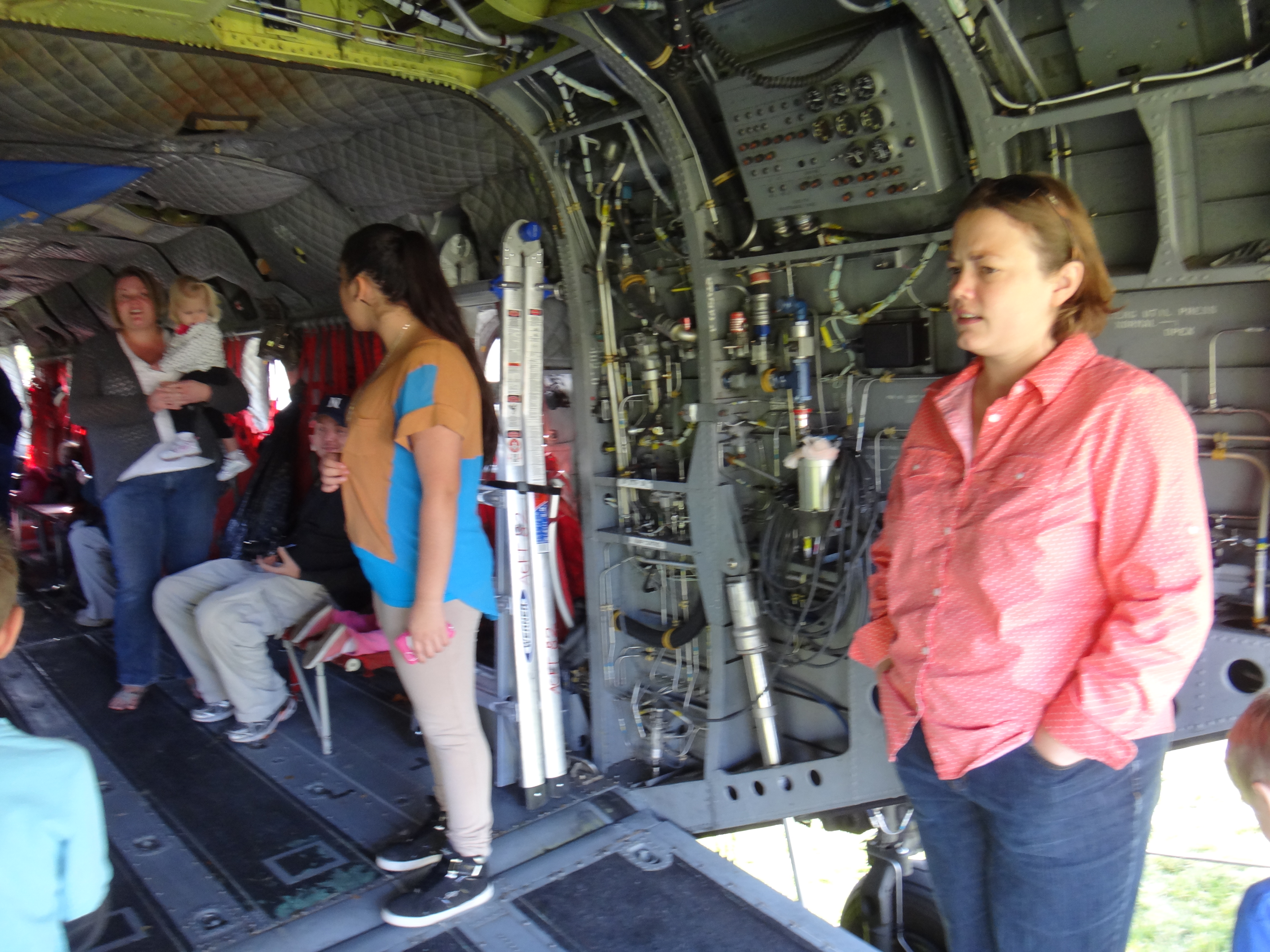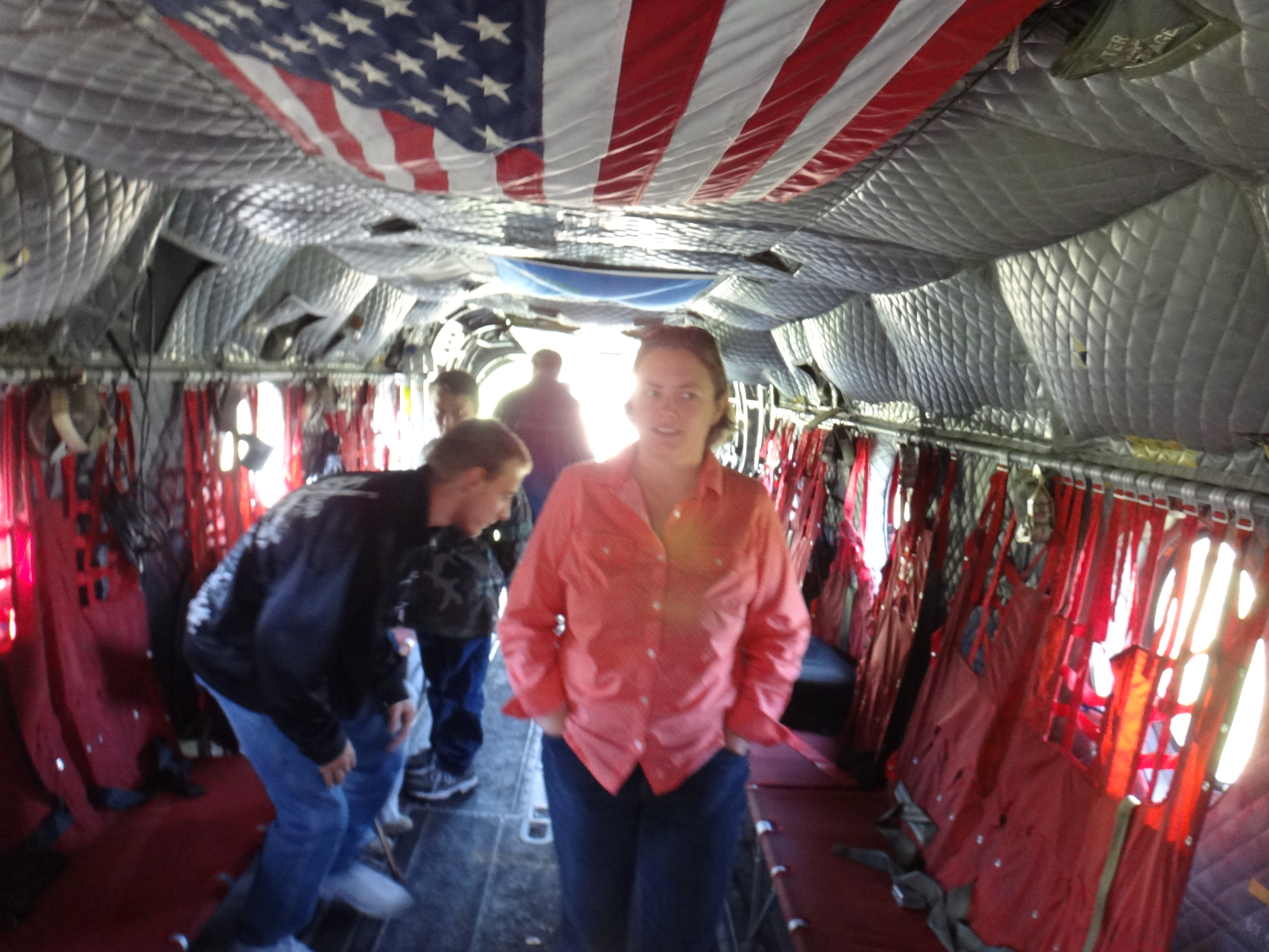 Inside the huge helicopter.