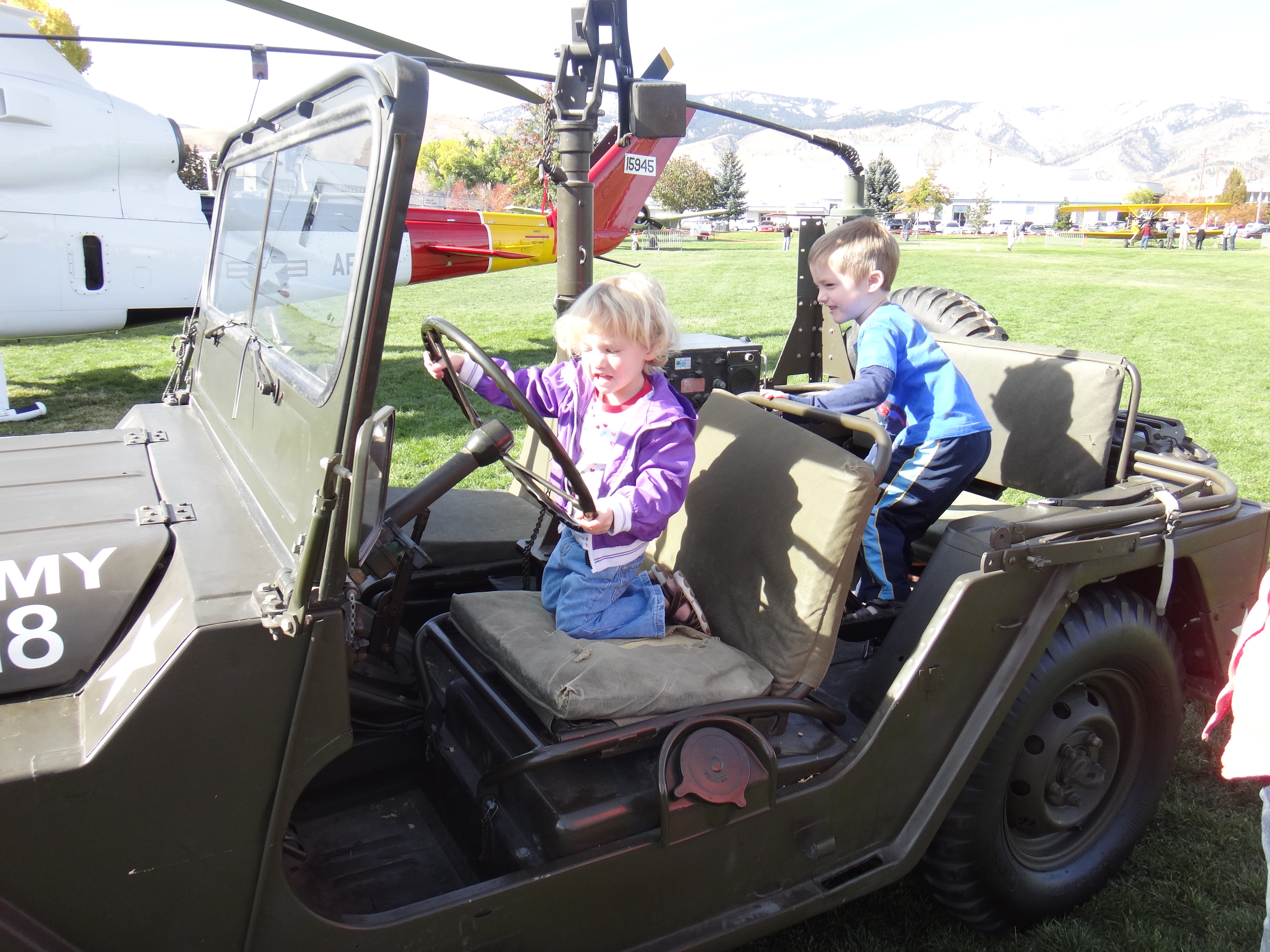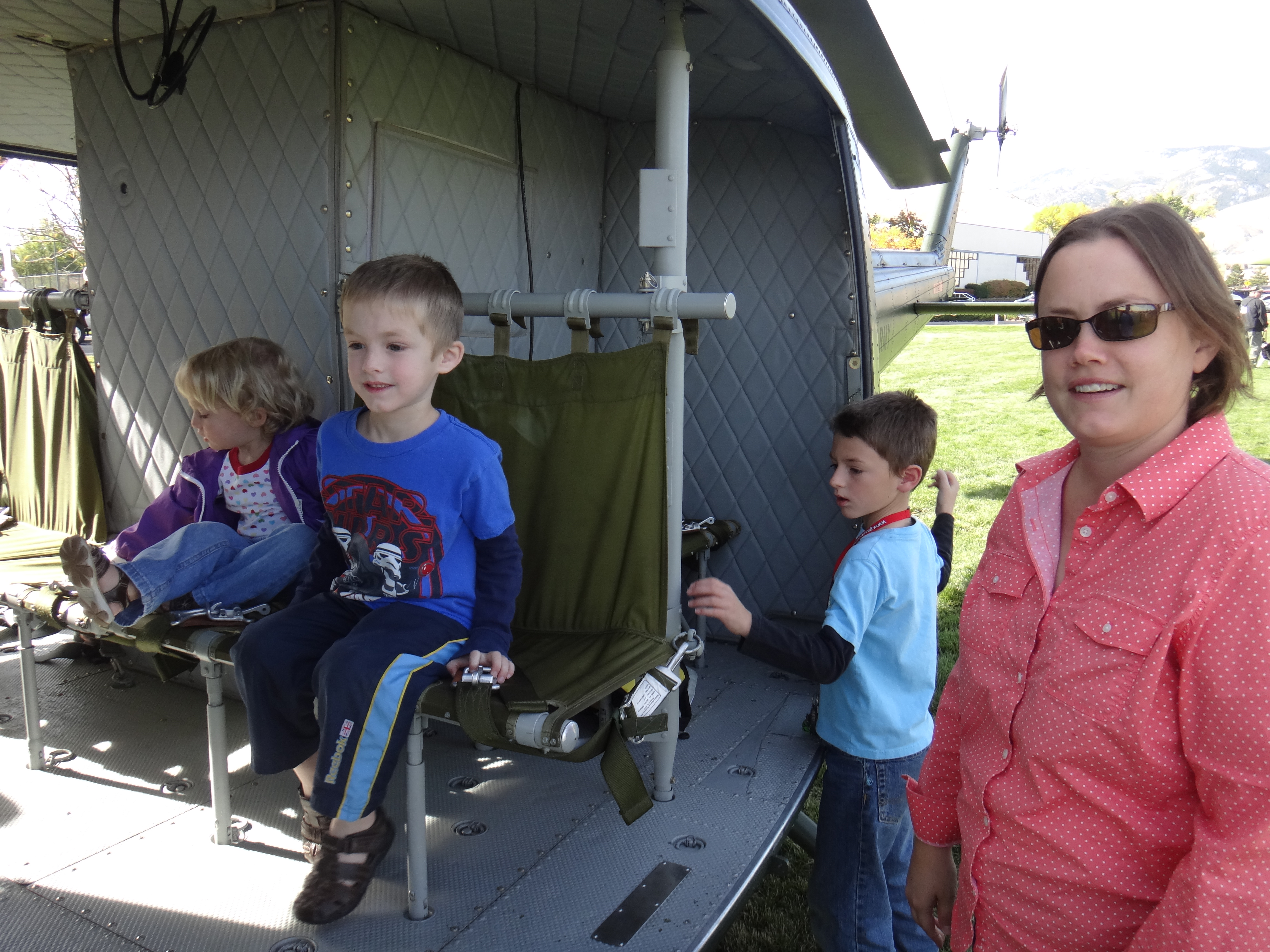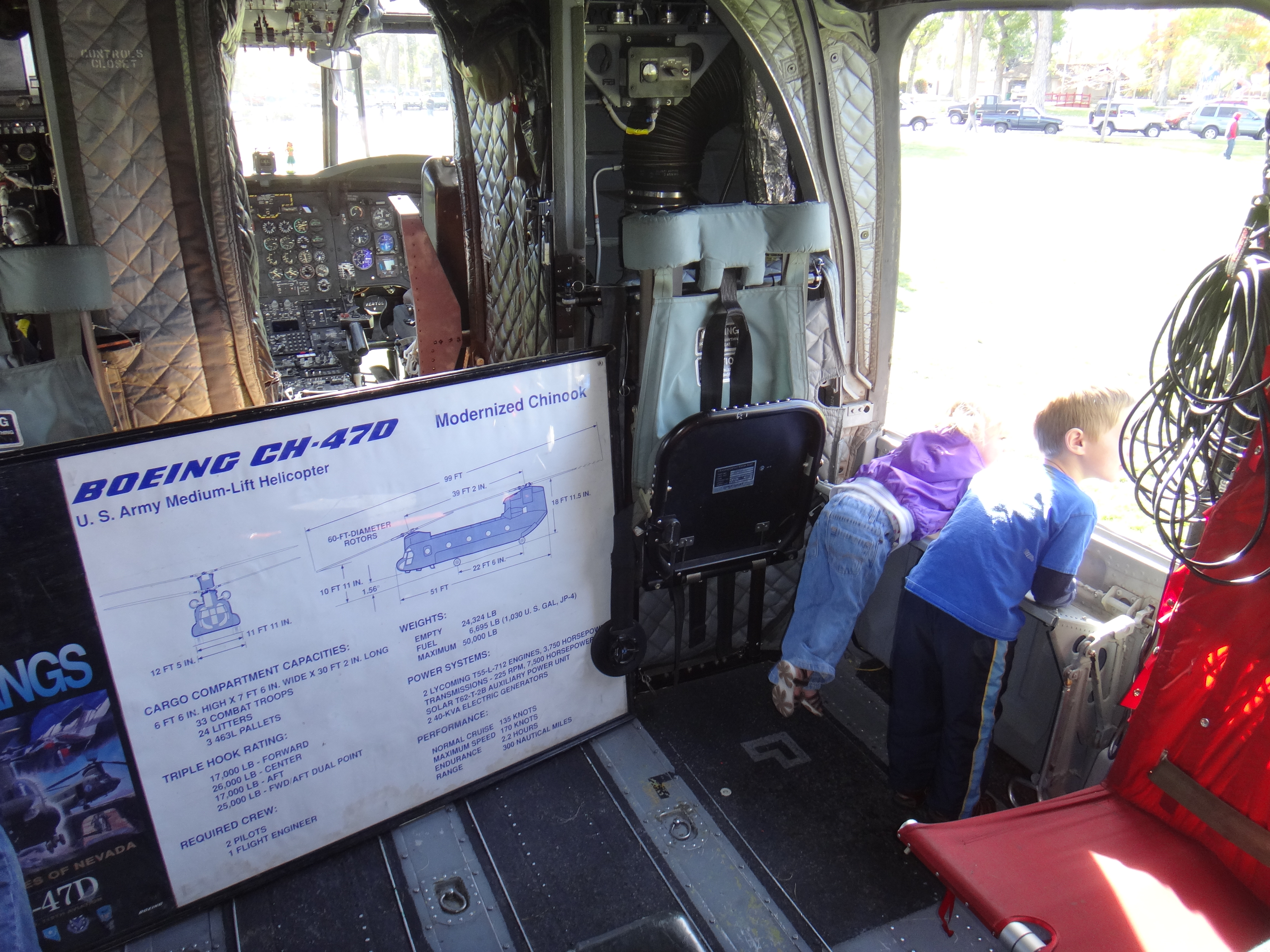 Inside the huge helicopter.