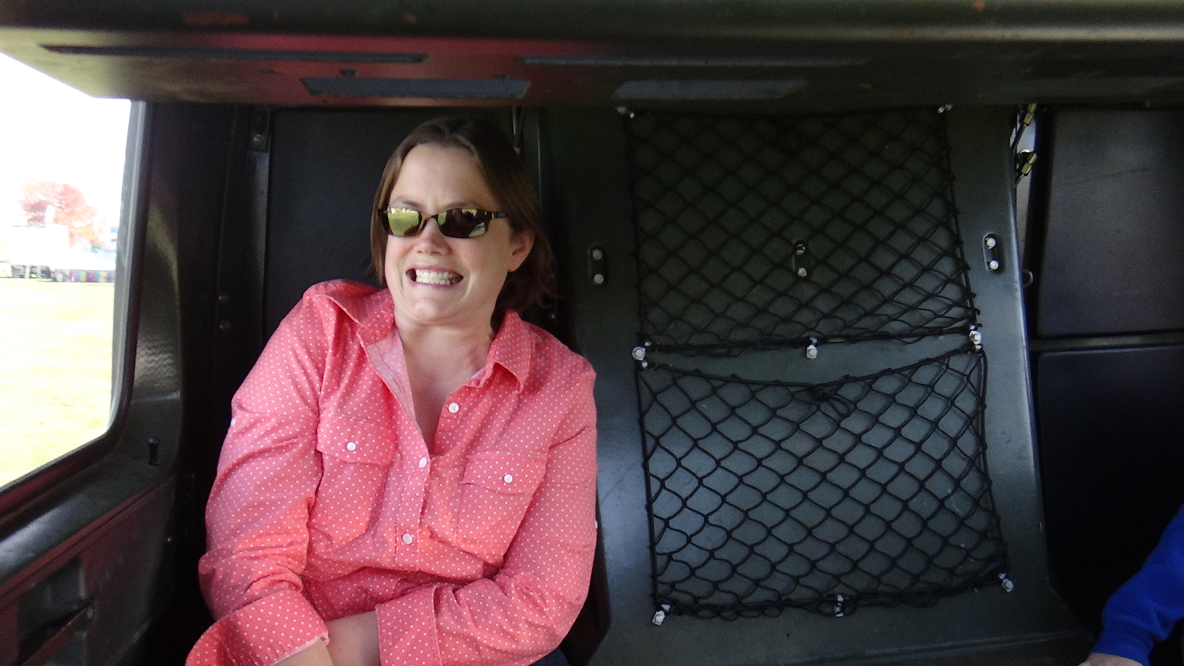 Here I am, inside, in the back seat of the front section.