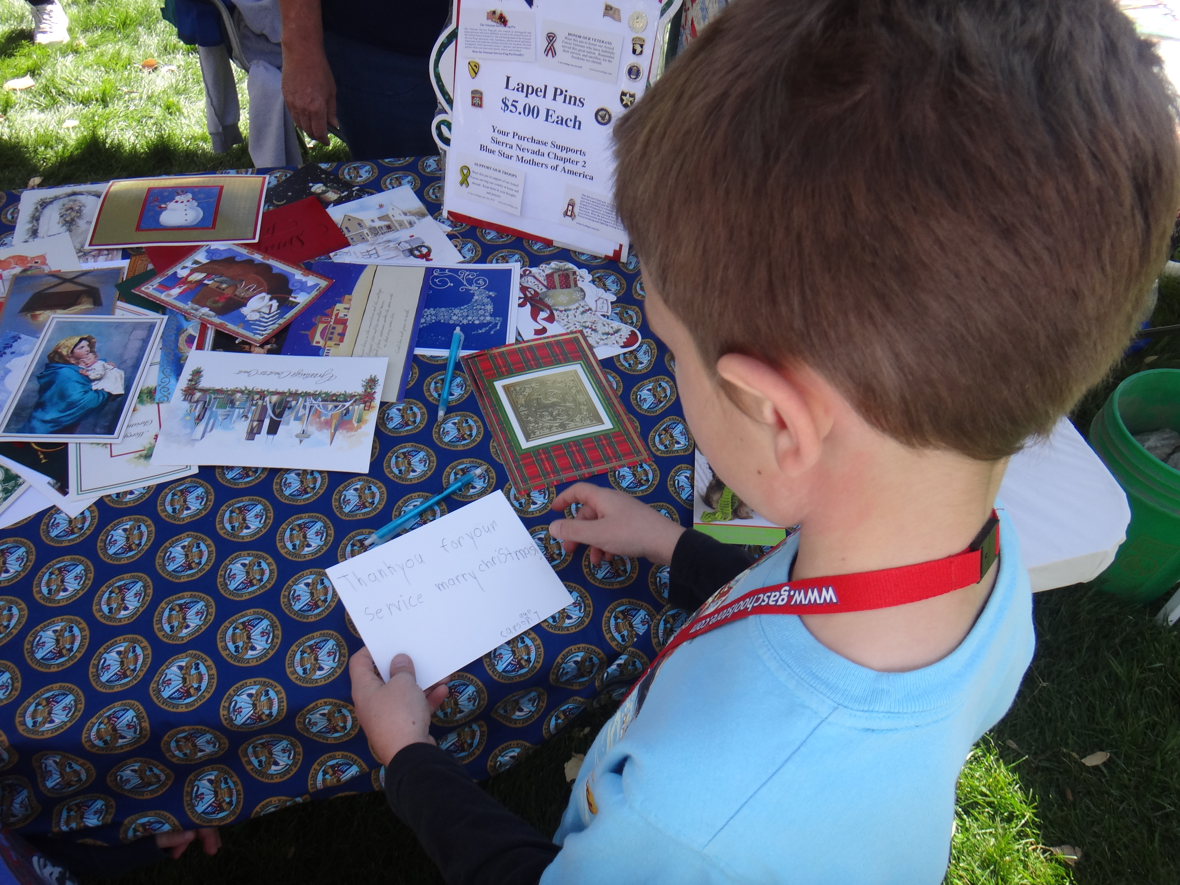 We signed Christmas cards for the troops.