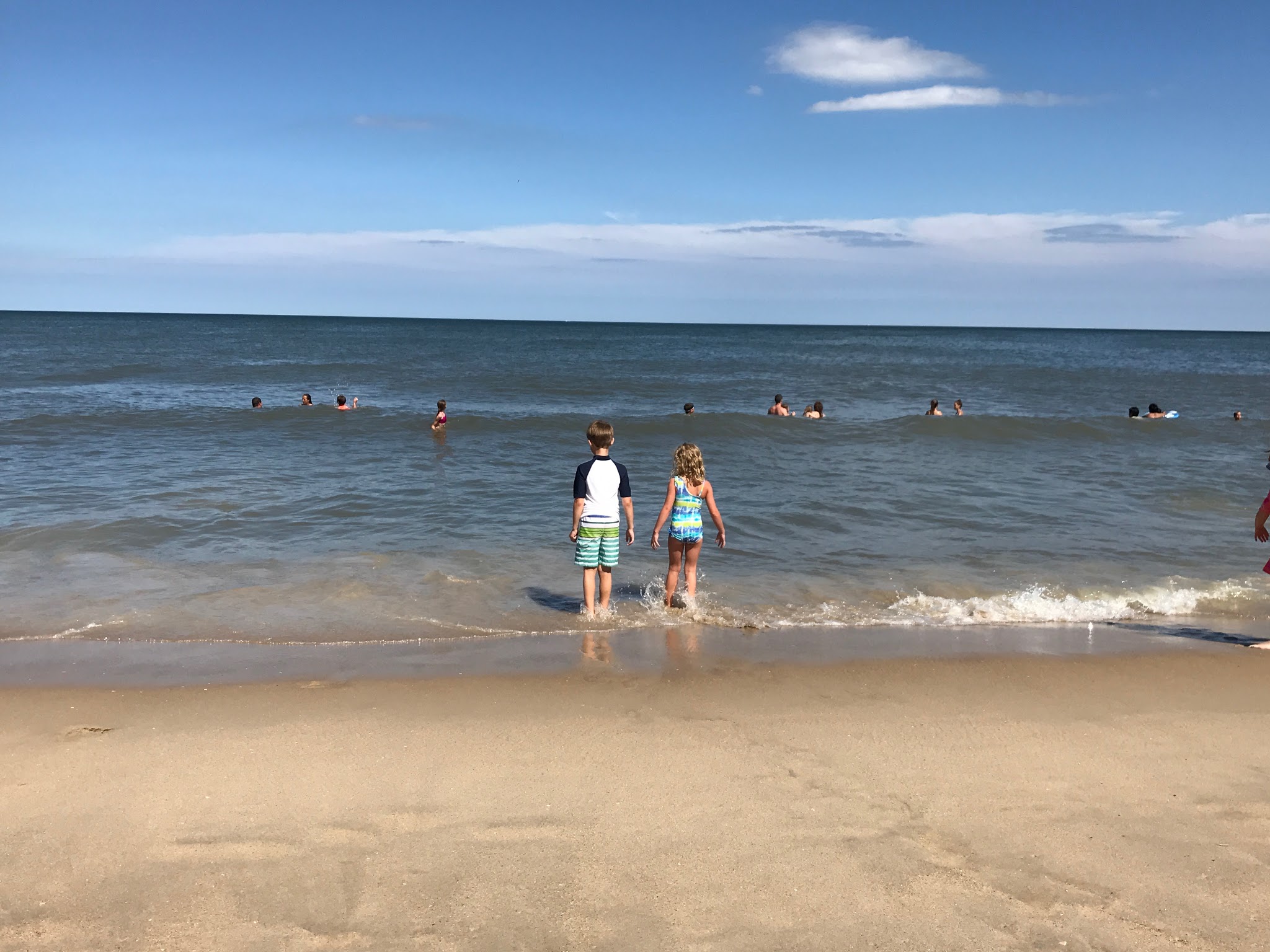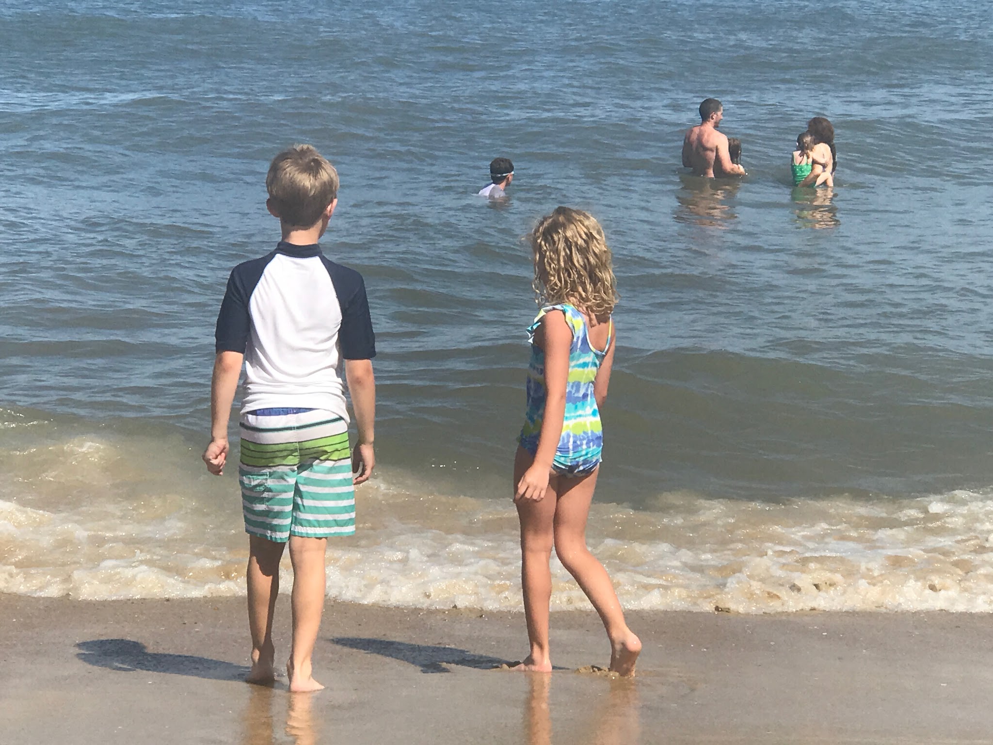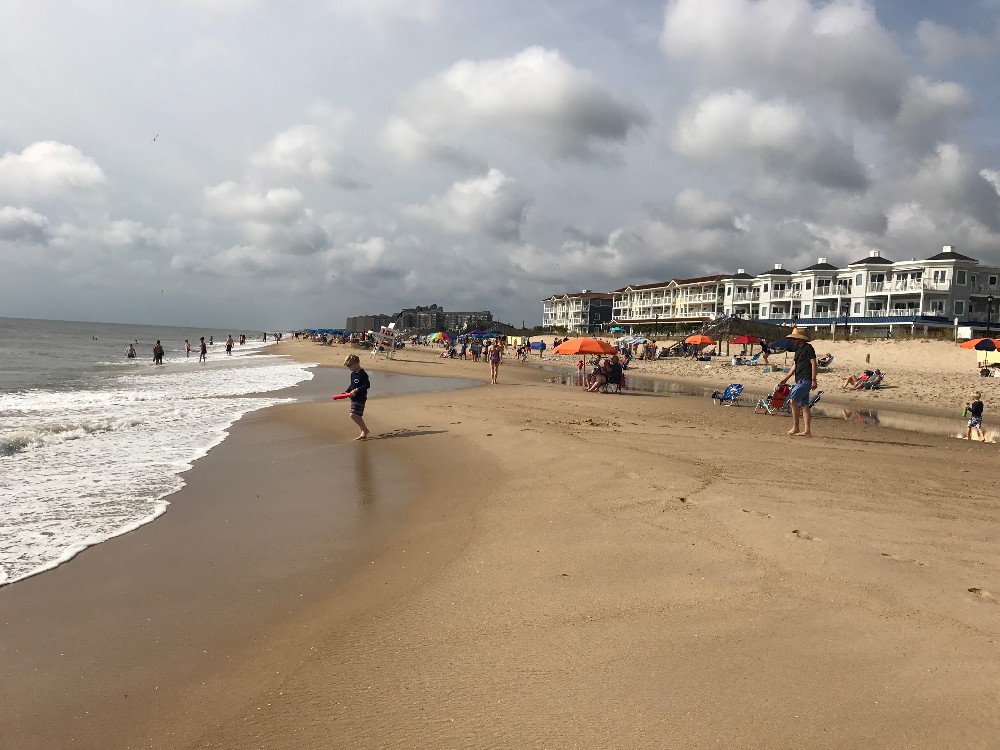 We went to Bethany Beach on Saturday, then to Rehoboth Beach on Sunday. We liked Bethany Beach better, just cause it had smaller buildings right by the beach. They didn't have any huge hotels right on the beach, so it felt more secluded. They had chairs and umbrellas we could rent on the beach. Every now and then, a plane would fly overhead with a banner attached, advertising Geico or an upcoming local concert. That was annoying. We had dinner at a place called 'Off the Hook', very good. We got some fudge from a place called "3 Blonde Bakers", very good!