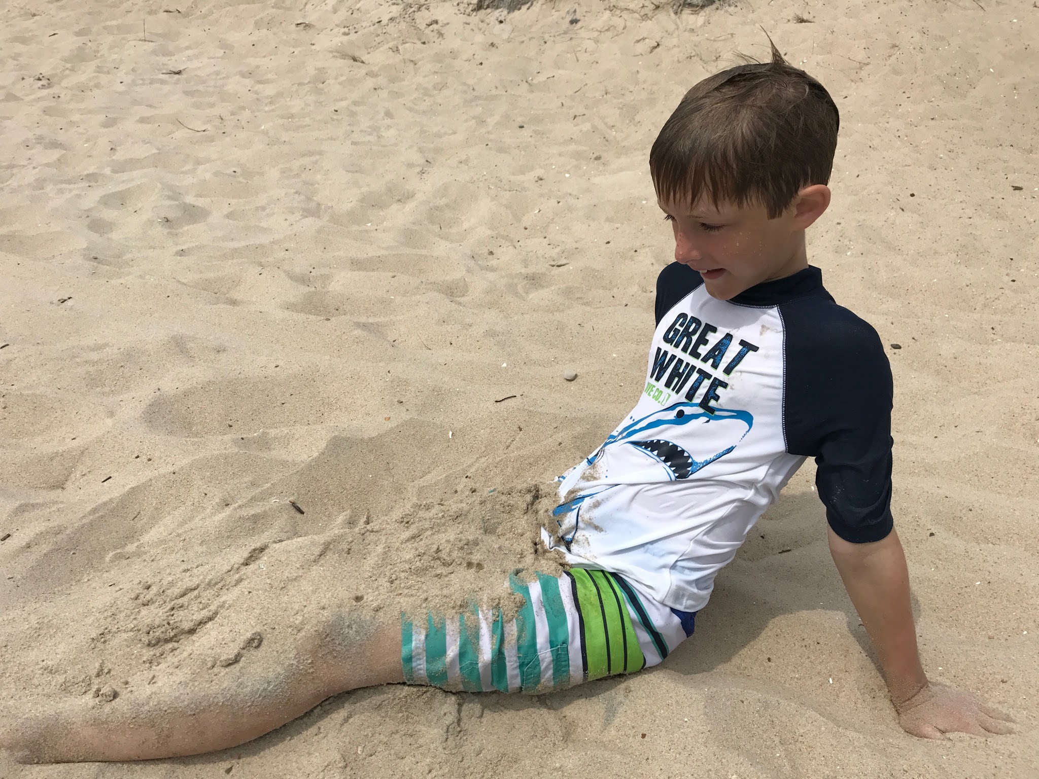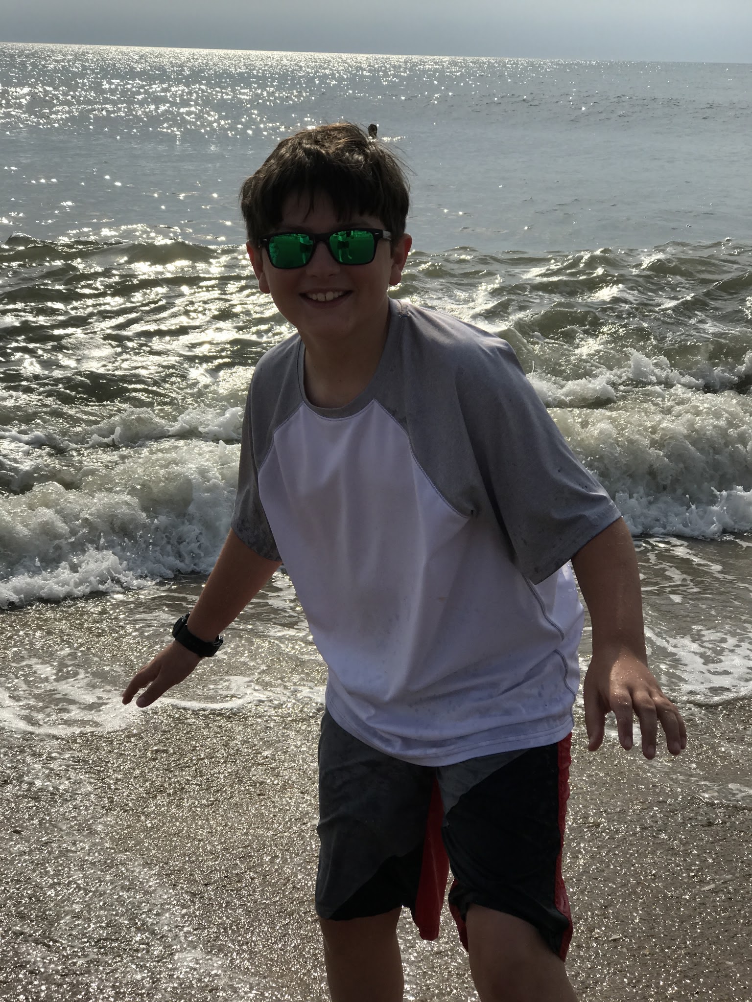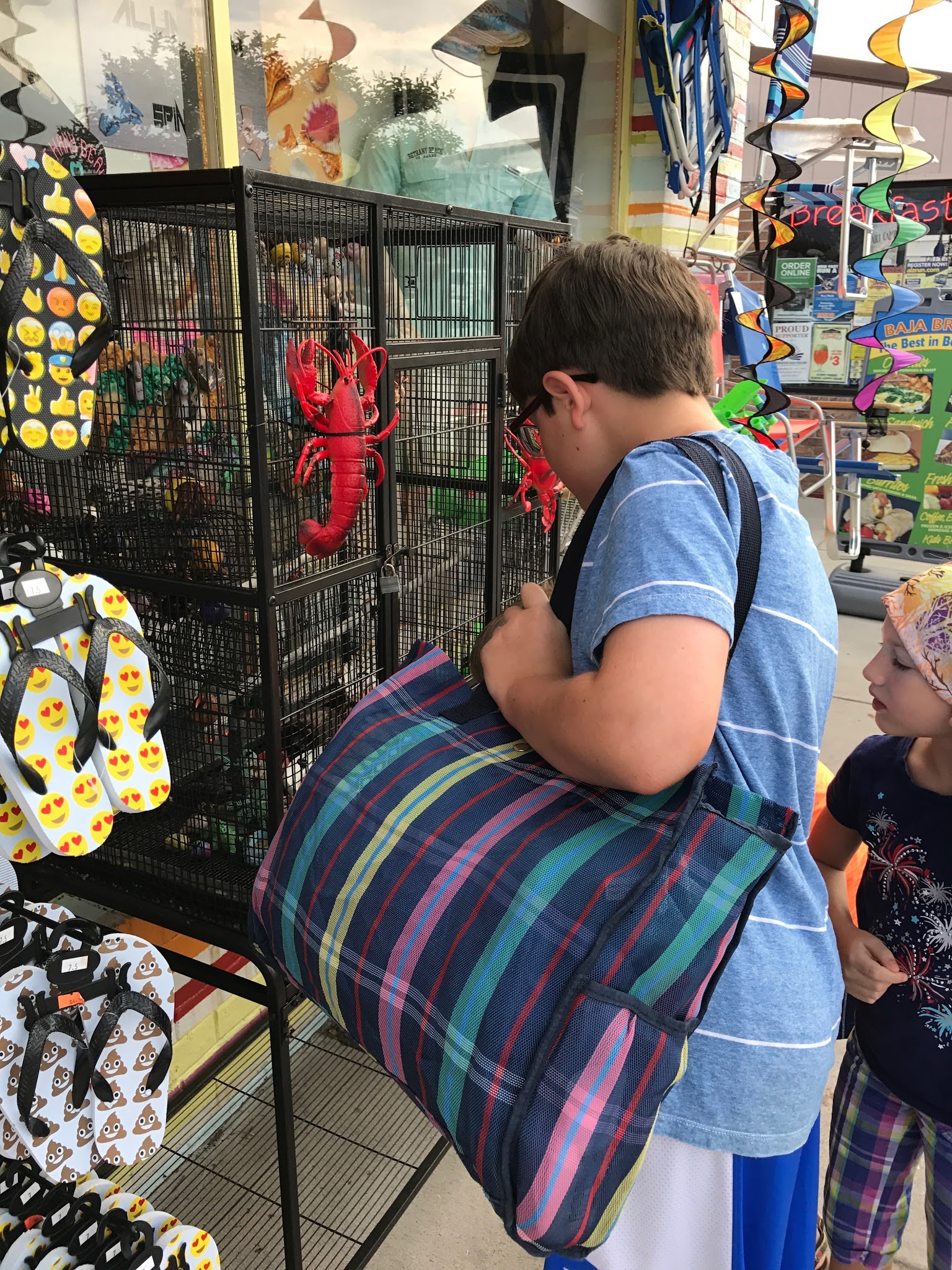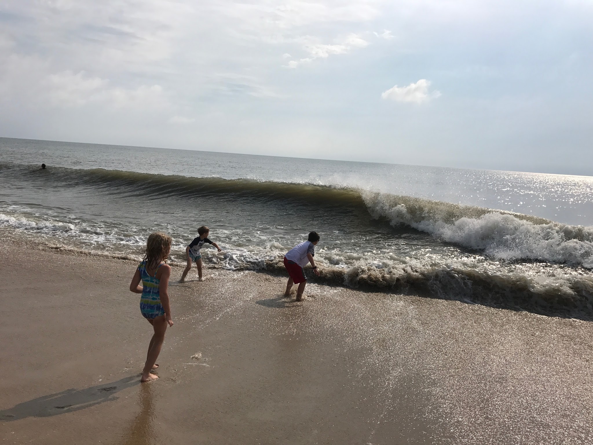 We went to Bethany Beach on Saturday, then to Rehoboth Beach on Sunday. We liked Bethany Beach better, just cause it had smaller buildings right by the beach. They didn't have any huge hotels right on the beach, so it felt more secluded. They had chairs and umbrellas we could rent on the beach. Every now and then, a plane would fly overhead with a banner attached, advertising Geico or an upcoming local concert. That was annoying. We had dinner at a place called 'Off the Hook', very good. We got some fudge from a place called "3 Blonde Bakers", very good!
