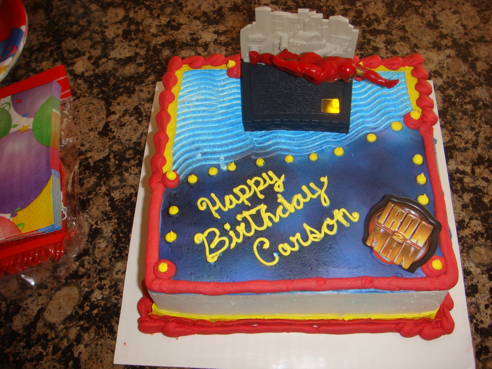 Carson and the Ironman cake, which was totally gone by the end of the party.