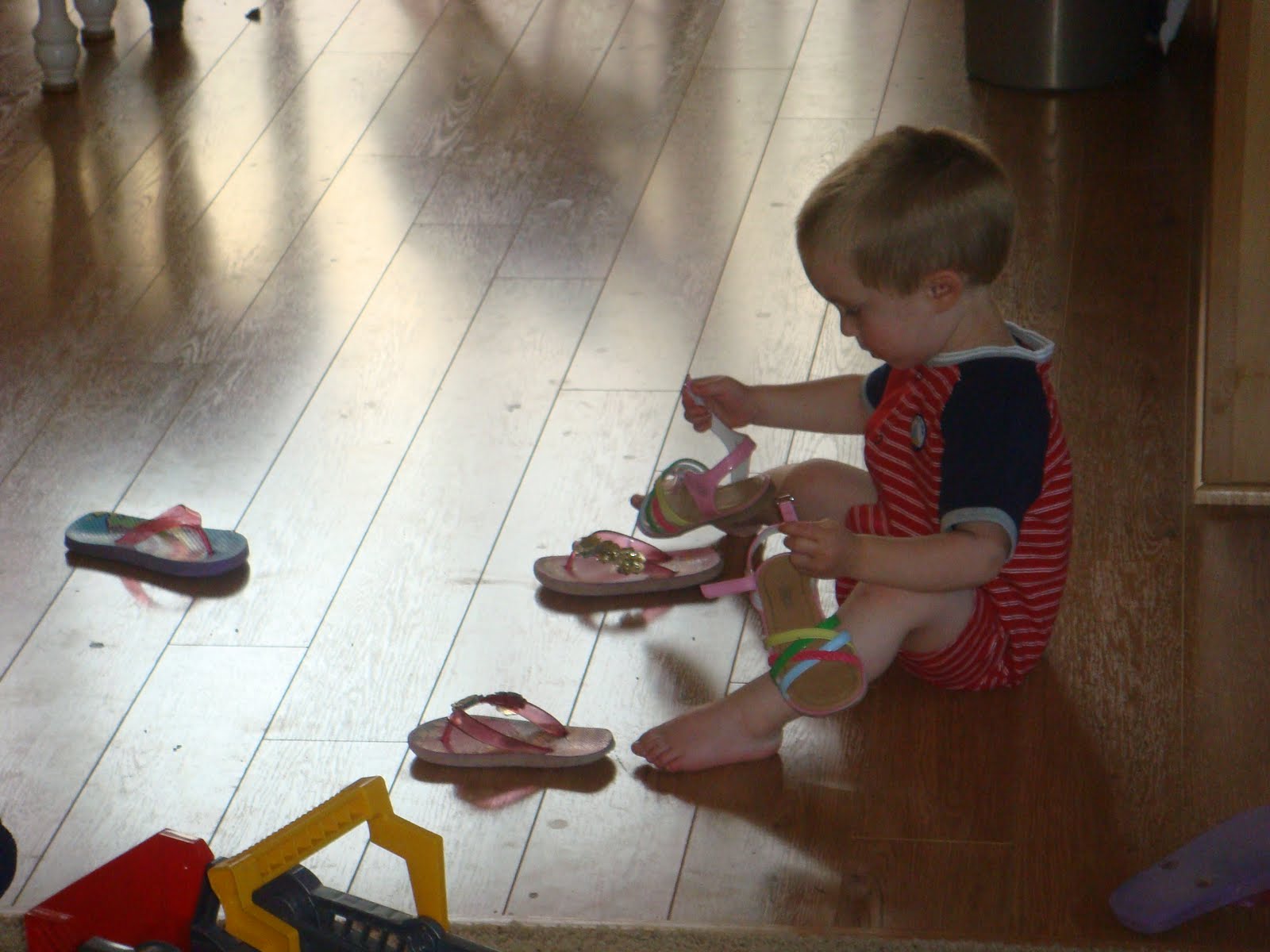 Tucker likes girl shoes!