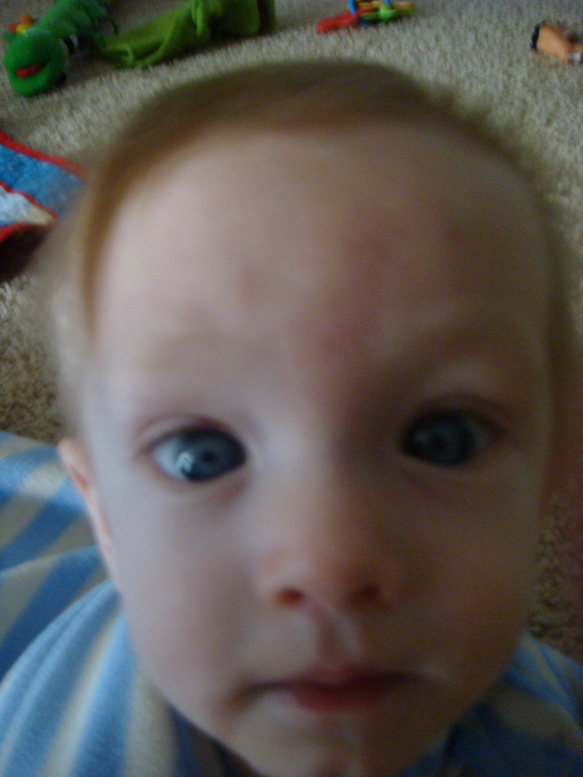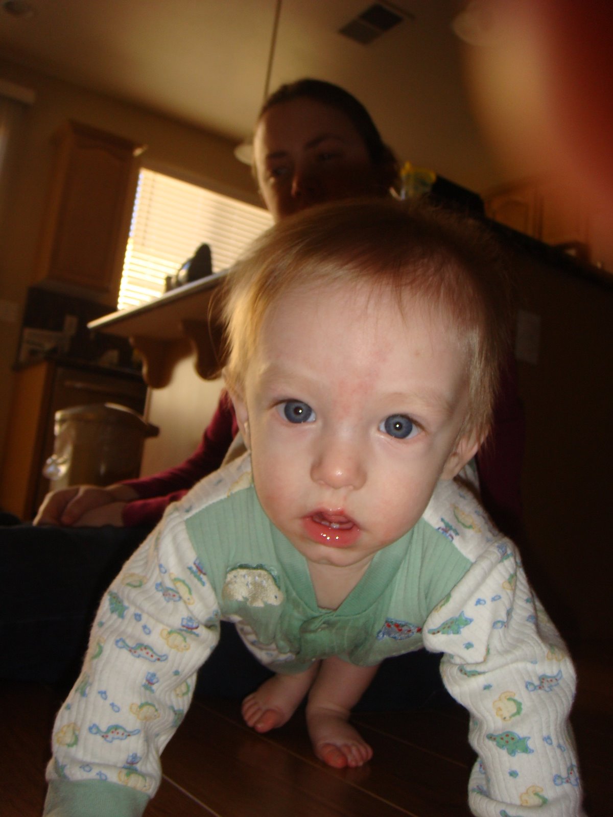 The last four pictures are taken by Carson. He's pretty good with the camera. He really captured Tucker's new skill, crawling. In the red picture, that was when they were inside the tent that Carson got for Christmas. they were in there for a while, laughing and playing, and taking pictures too. Tucker really 'plays' with Carson now. He squeals with delight as Carson crawls around on the floor with him.