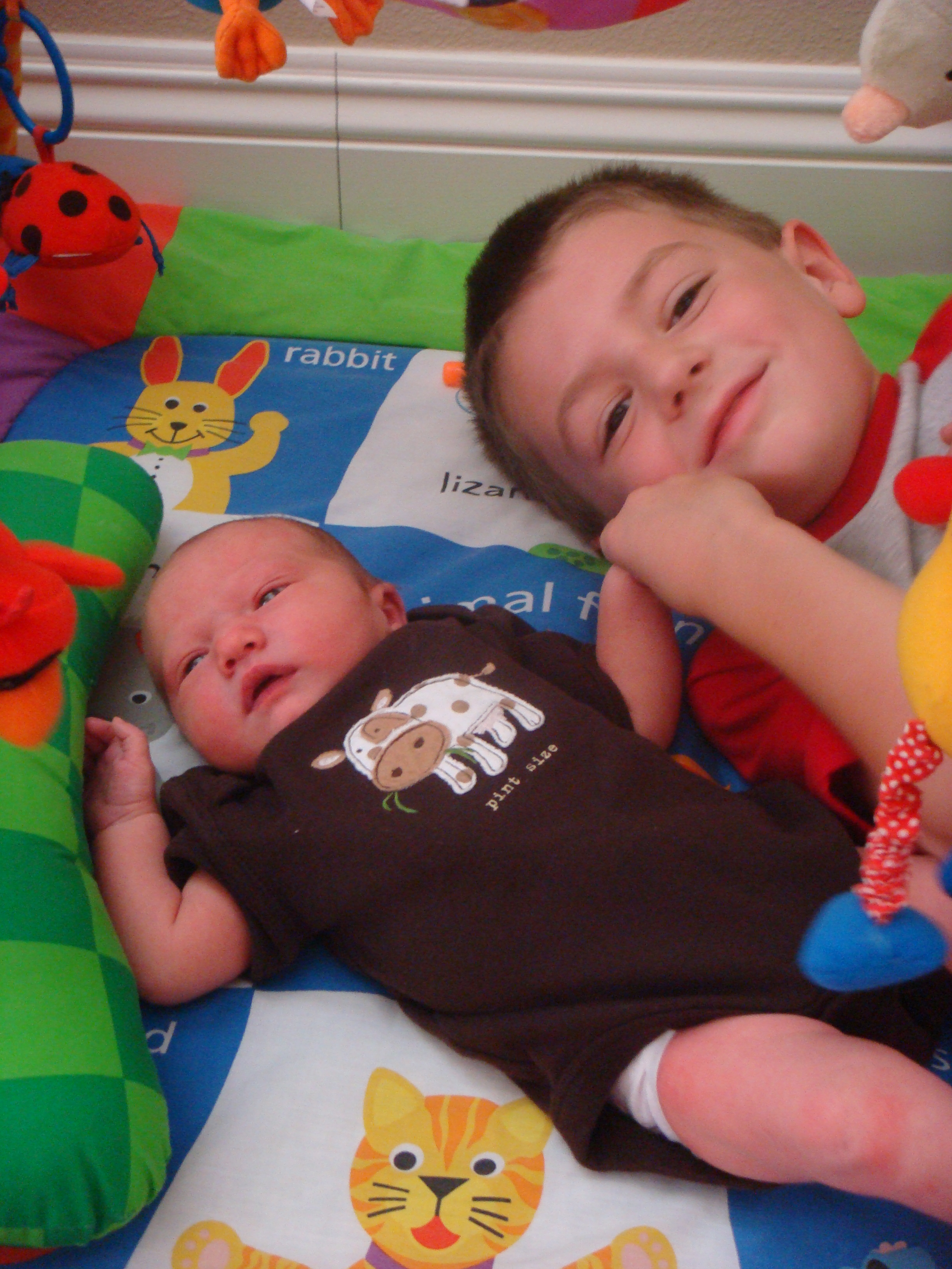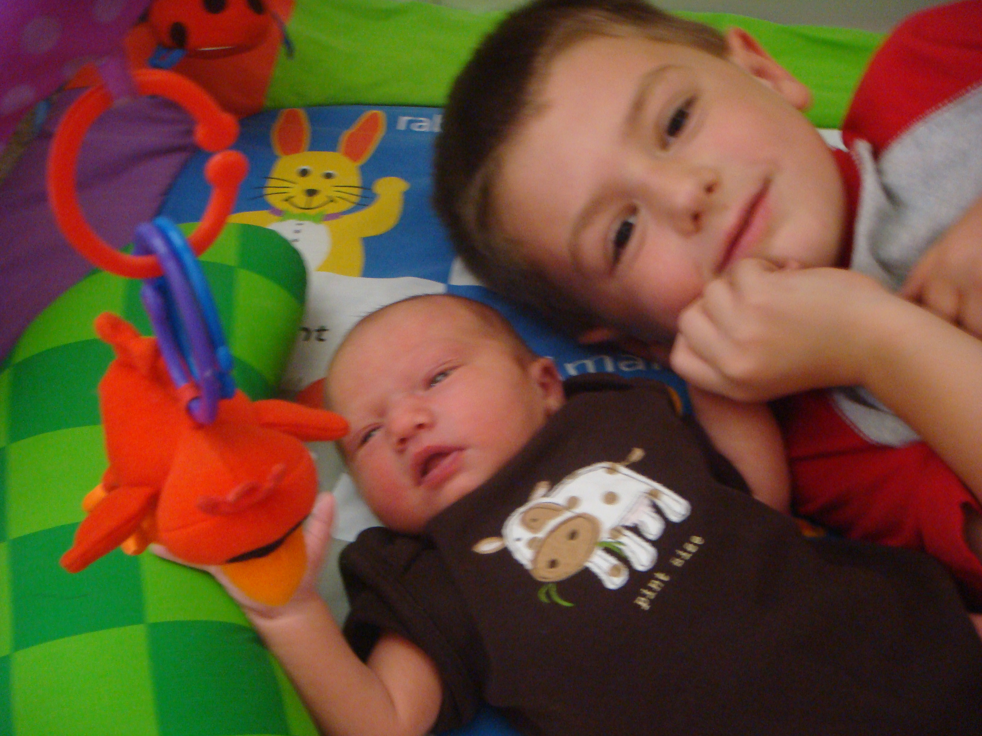 Carson is such a good big brother. He's always looking for toys and giving them to Savannah. He's always interested in what she's doing. He always asks to hold her. She is so lucky.