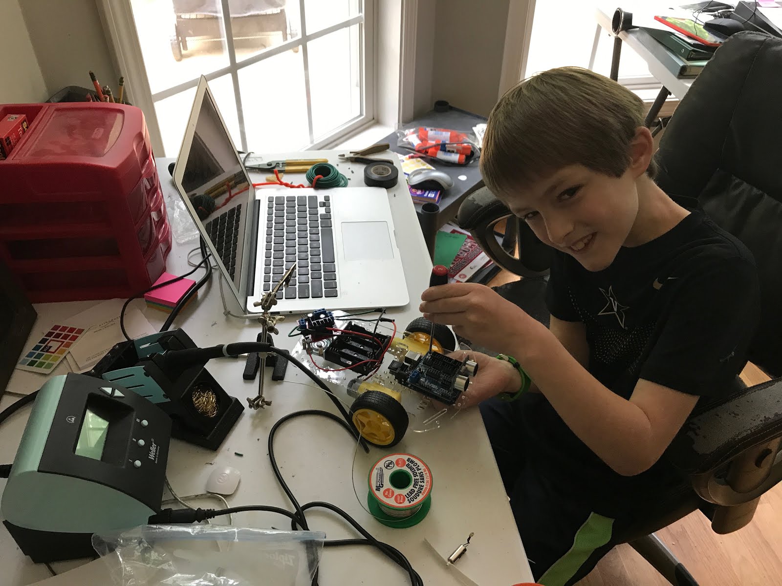 Tucker practicing soldering: