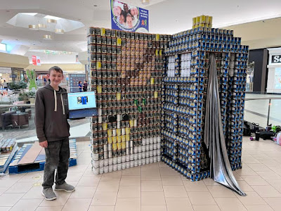 Today the VC Silver Circuits teamed up, once again, with the AT&T Pioneers - Silver State Chapter 101 to construct another impressive CANstruction structure. Our own team member, Hunter, who is only 13, used his CAD skills to design the structure in Fusion360. This year’s structure is 9’-6” wide x 7’-7” tall! Members of the AT&T Pioneers, Hunter, Karl, Coen, Aidan, and Carson were all present to help bring the creation to life.