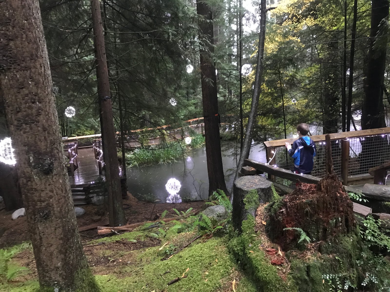 North of Vancouver is the Capilano river, surrounded by beautiful evergreen forests. Years ago, lumberjacks built a suspension bridge to cross the river. Now you can tour the area through a series of suspension bridges connecting tree houses and highlighting the Christmas lights and decorations.