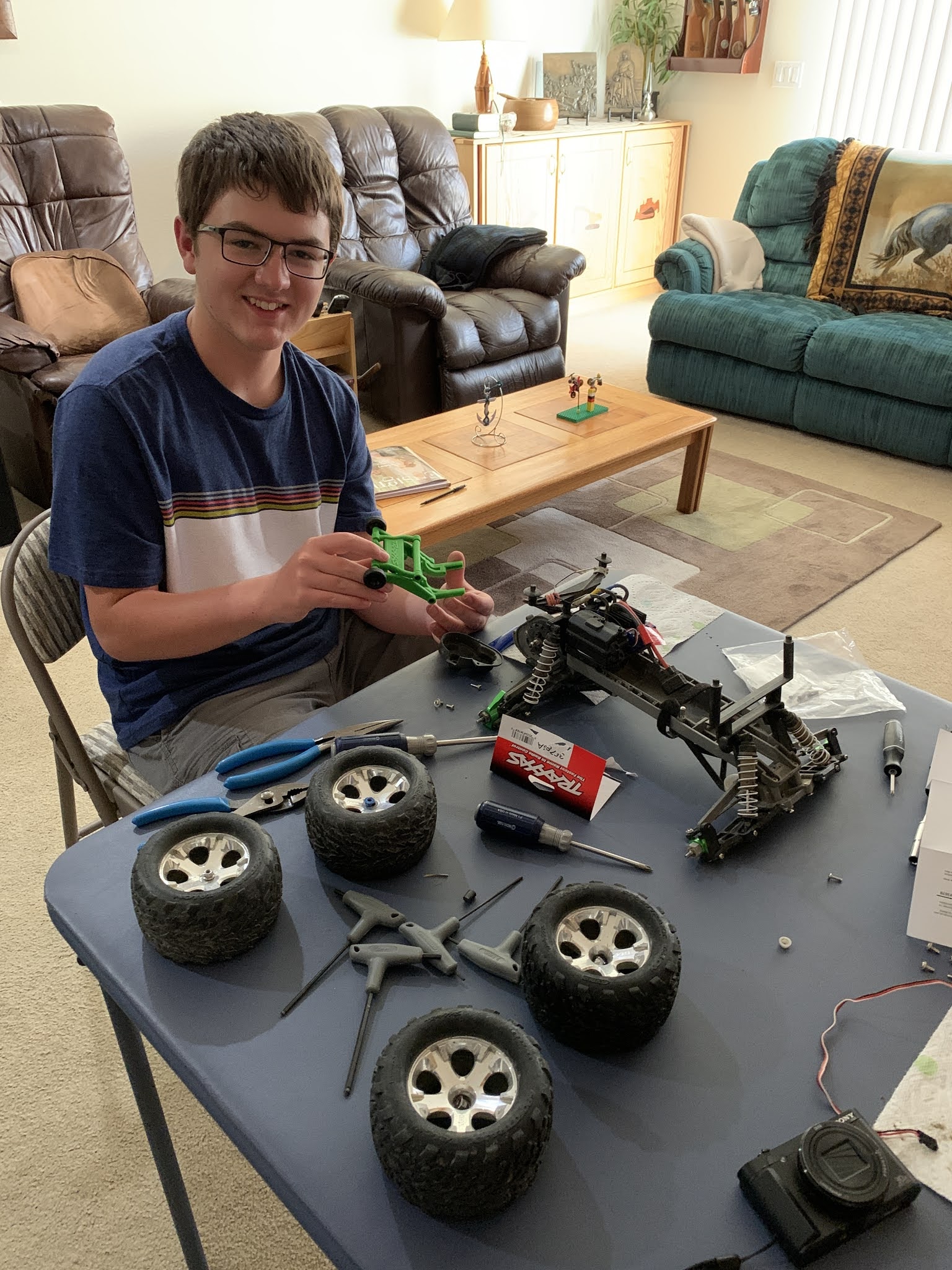 Carson started building up his RC car while we lived in Cedar City, and has continued to fix it up here.