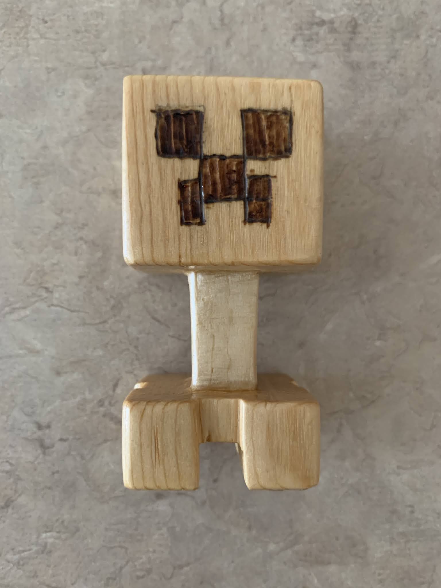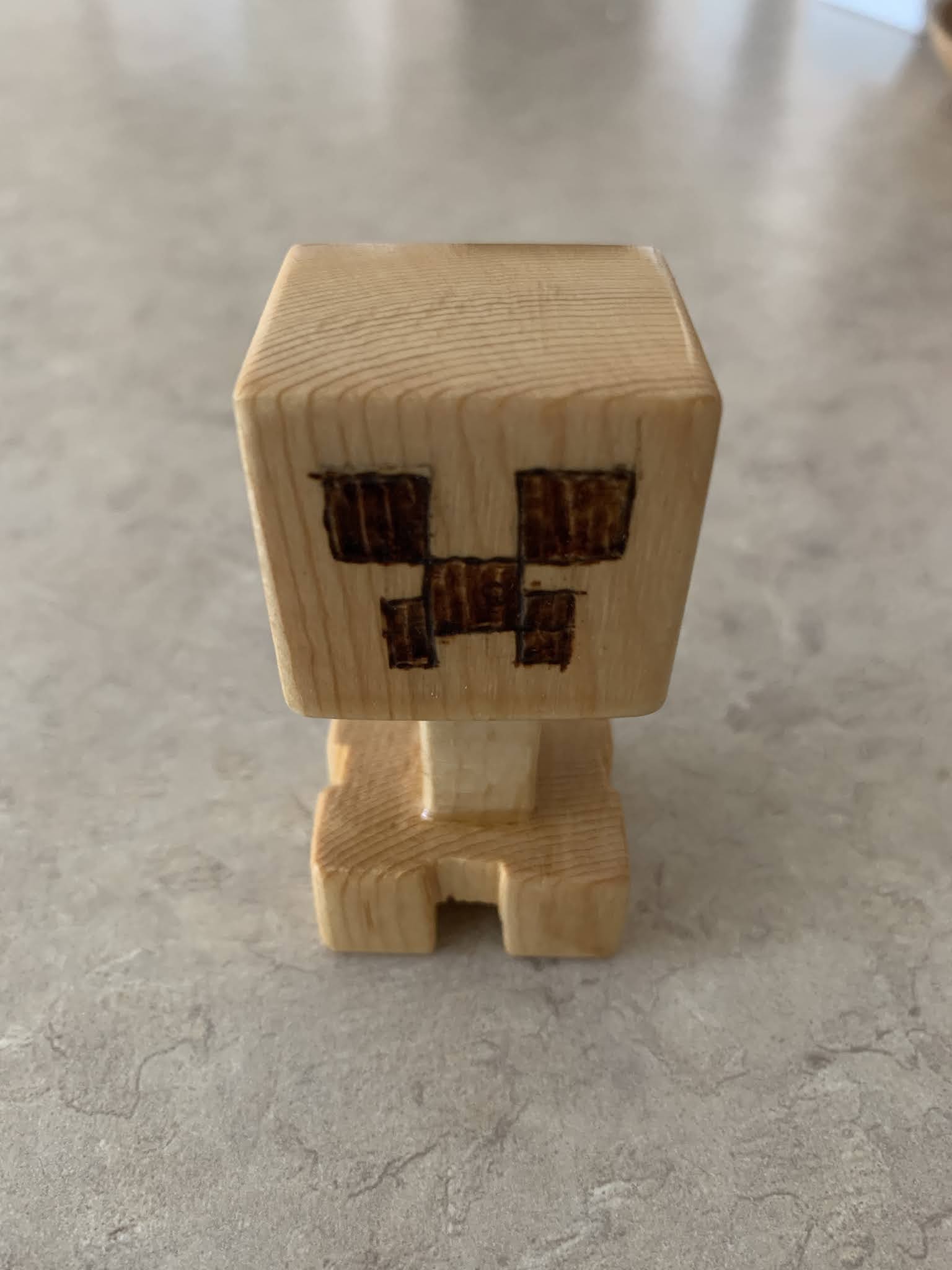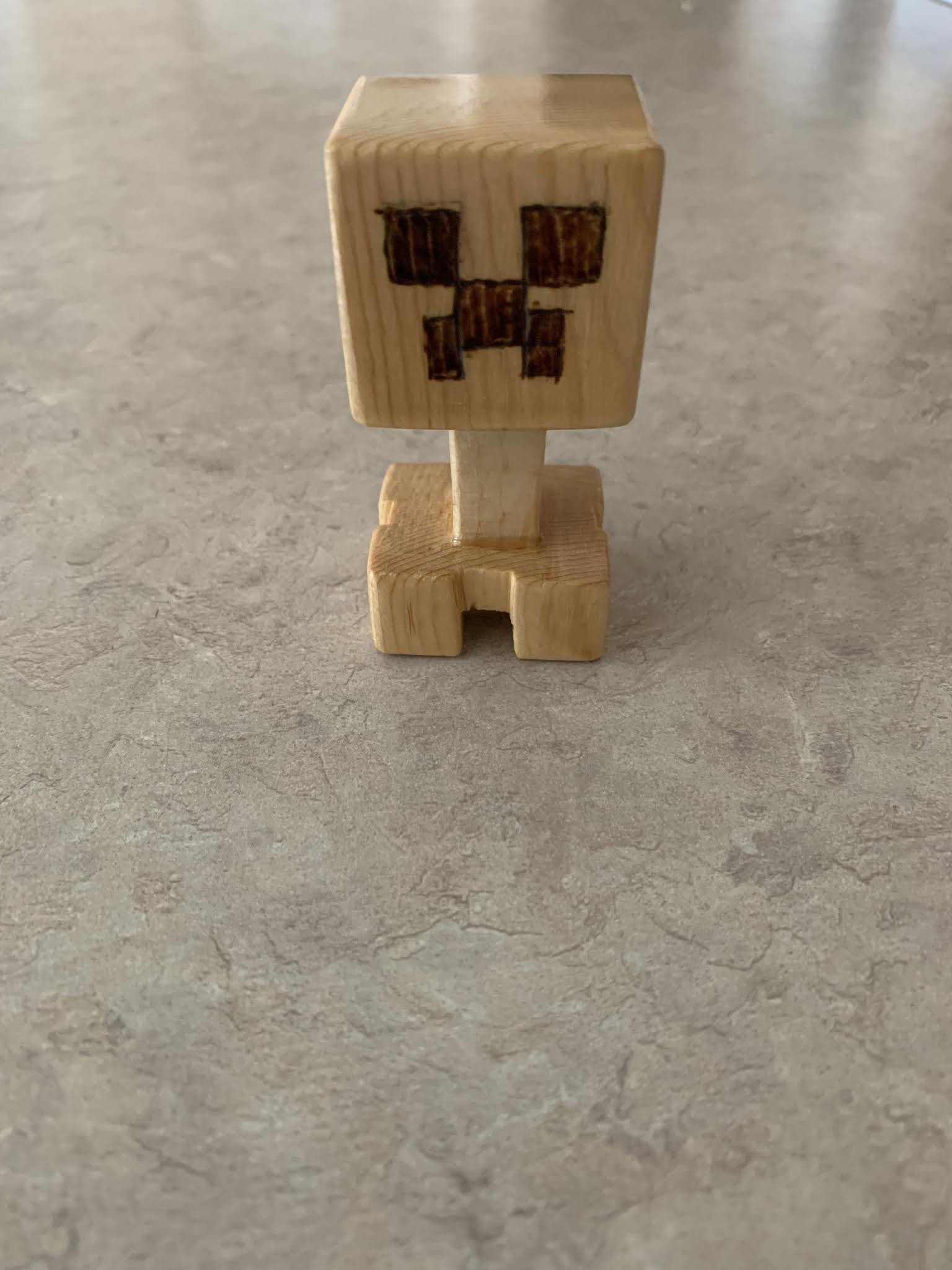 Tucker made a minecraft figure in Grandpa Knight's woodworking shop.