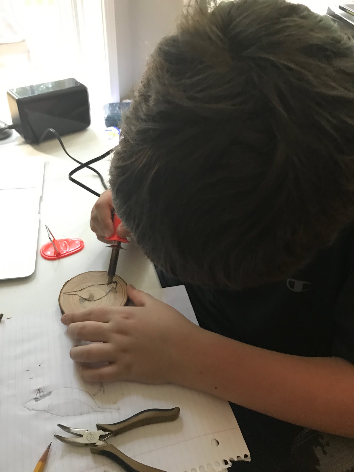 He received a wood burning kit and has been making some neat creations.