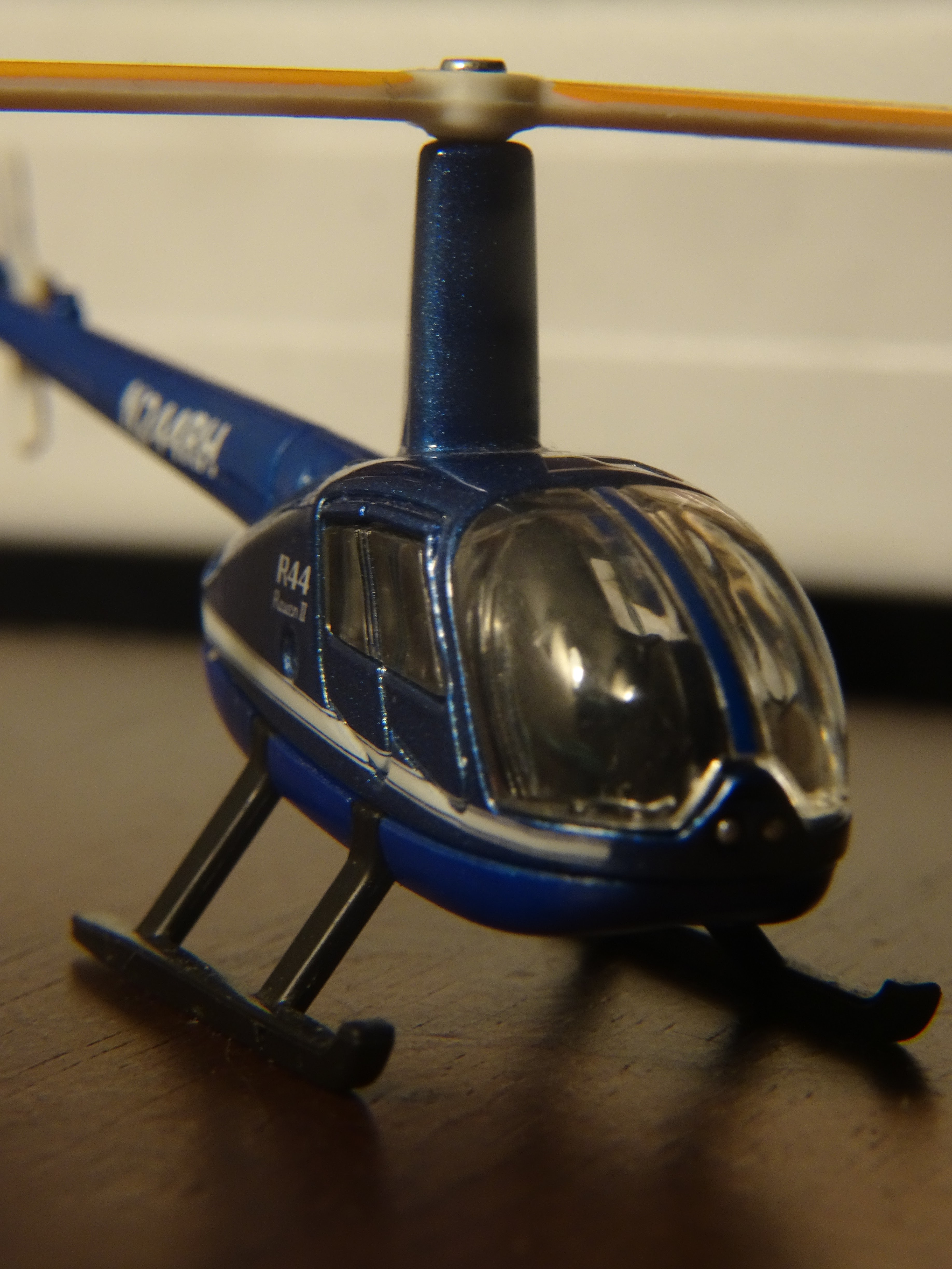This is the helicopter that my Uncle Brent flies. It is a Robinson R44.