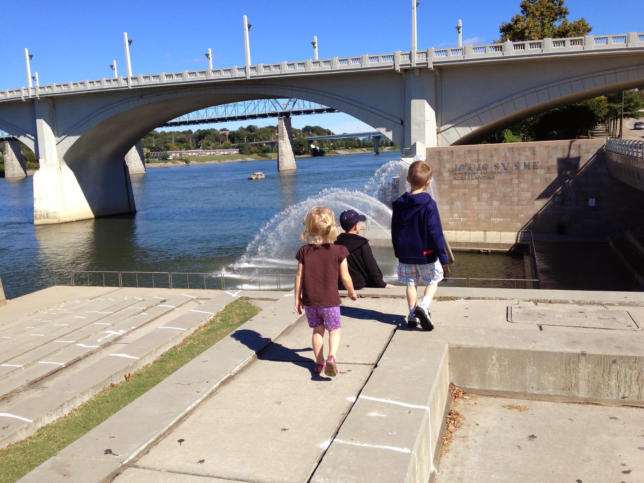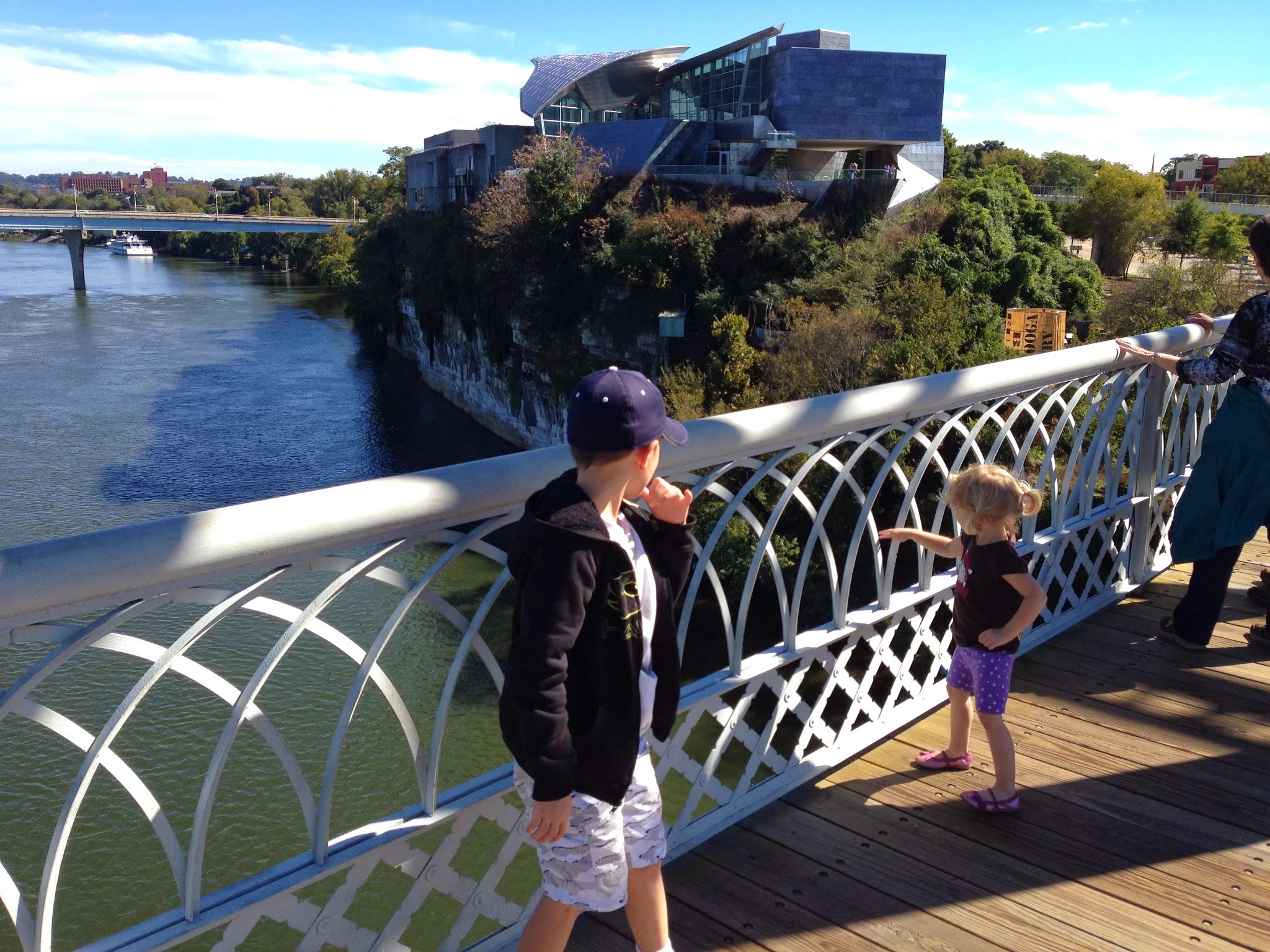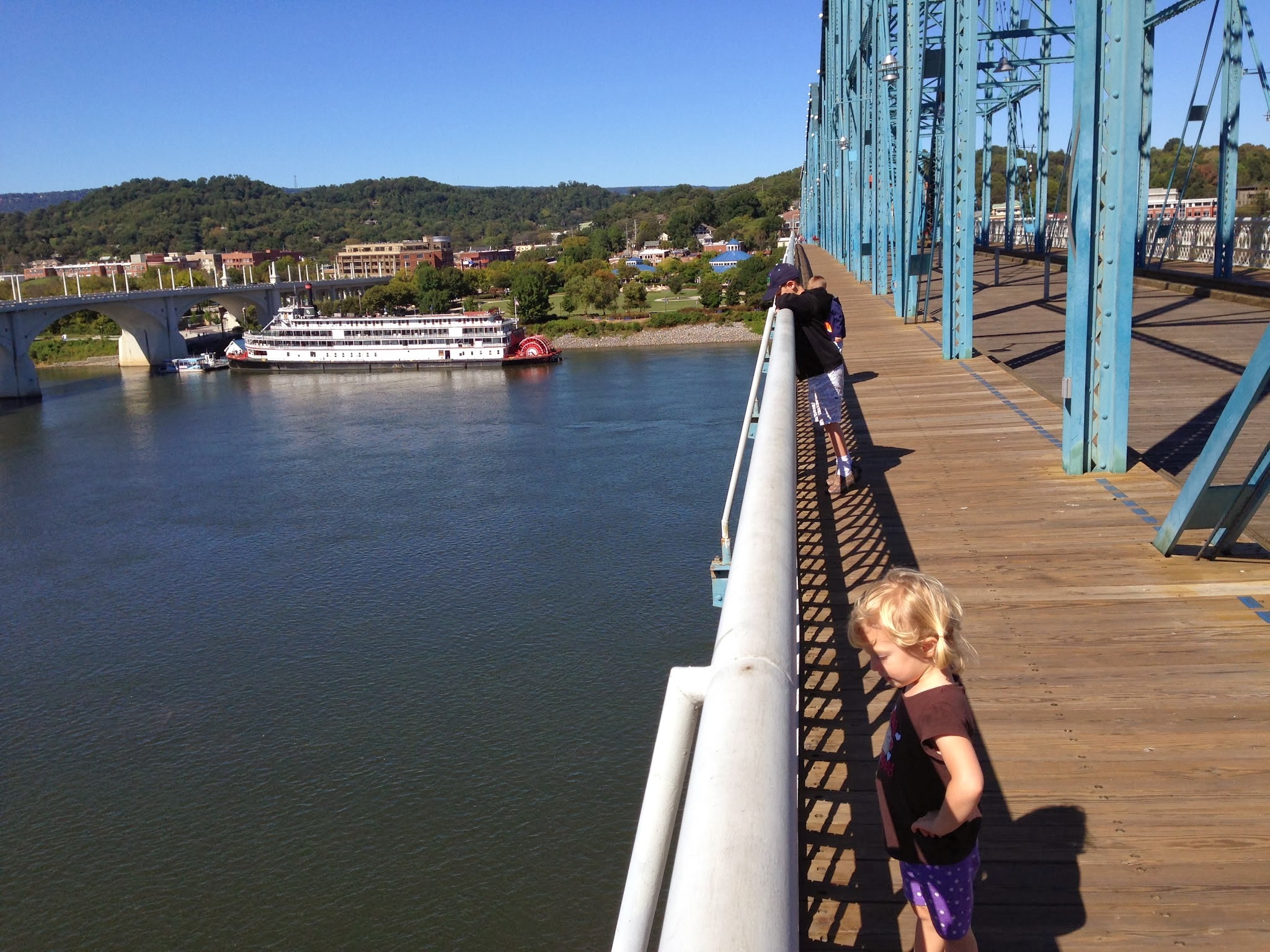 While Grandma and Grandpa Aksland were in town, we decided to visit Tennessee. No of us had been there before, so we took the two hour drive North and stopped in Chattanooga. We walked around downtown, got some lunch and walked by the river. There was a great view from the footbridge, which I think was one of the largest in North America.