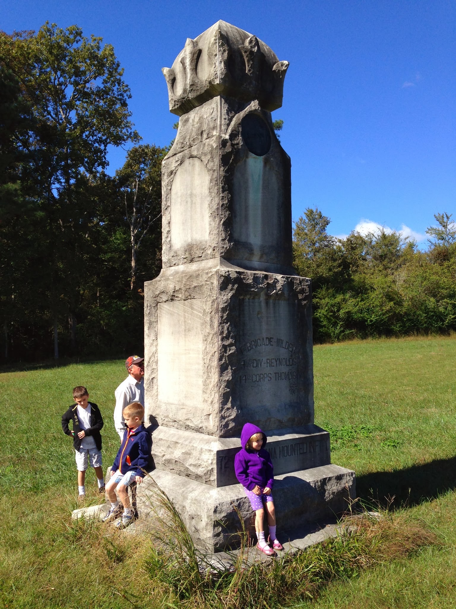 Near the border of Georgia and Tennessee is the Chickamauga Civil War Battlefield. We didn't have exact plans on our way to TN, so we decided to stop and take a look. Again, the government shutdown closed down the fields. They went as far as putting up no parking signs all over the place -- I wonder how much it cost to put up a sign to discourage people from walking around in a field. In any case, we found an area that didn't have no-parking signs and took advantage of it and walked around.