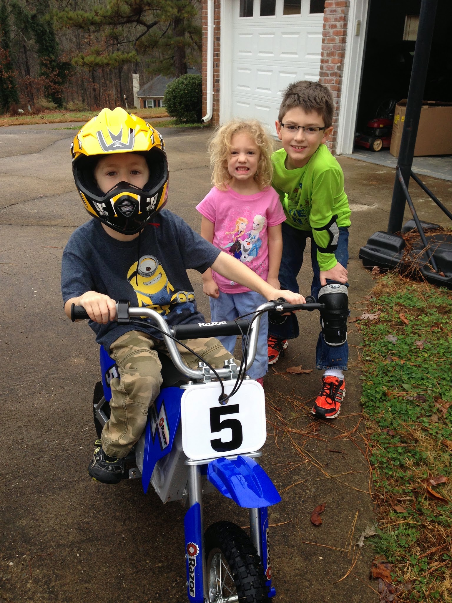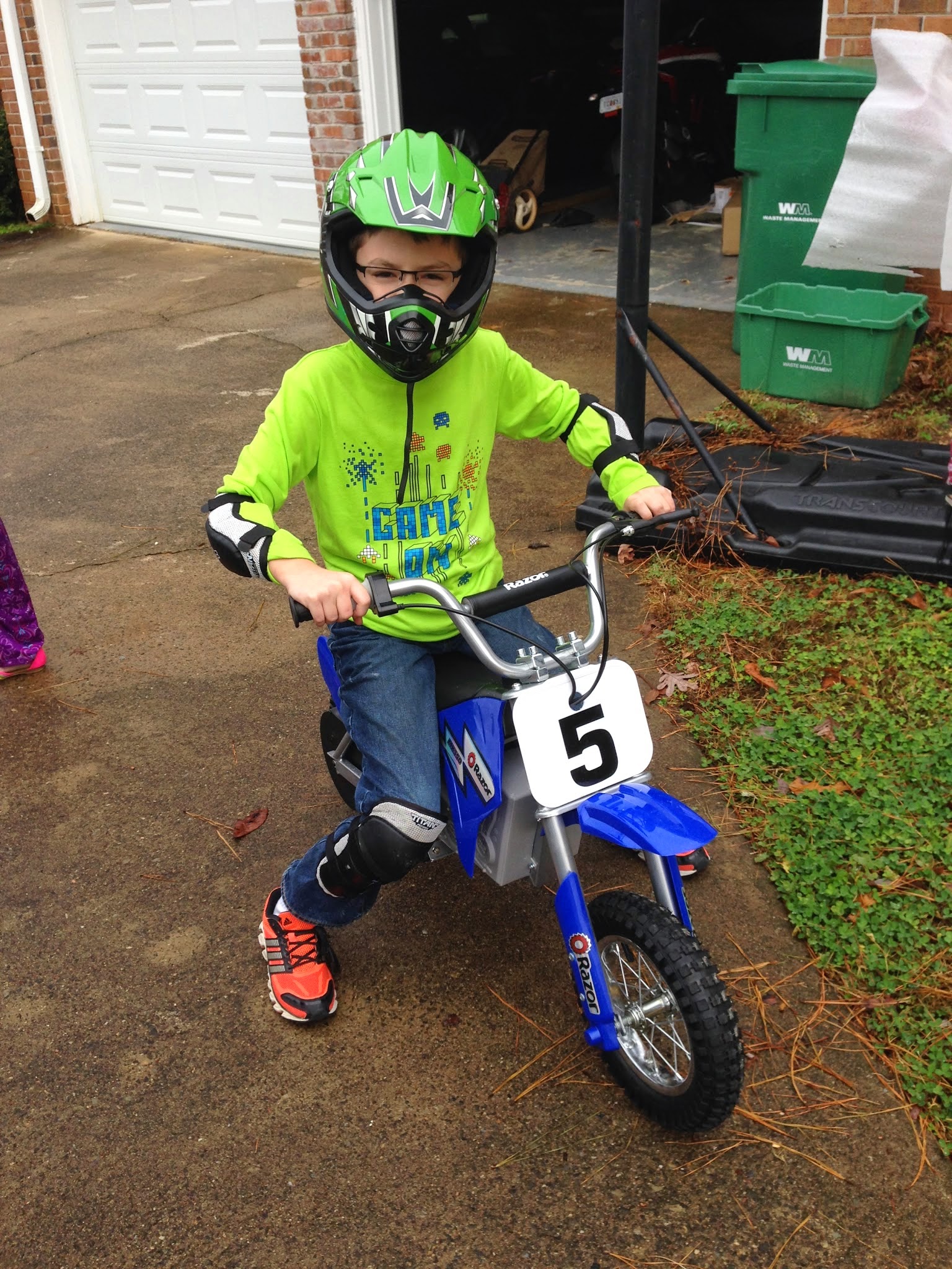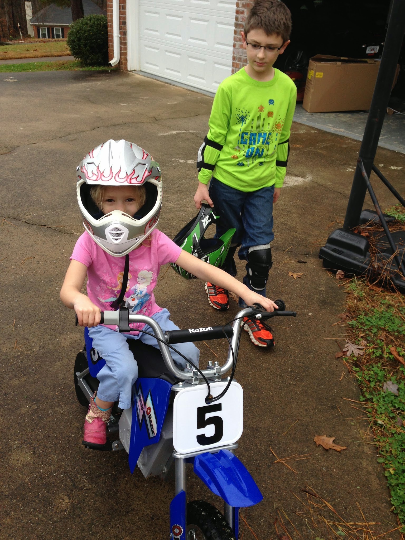 Carson received an electric Razor dirt bike for Christmas. Since we open a present or two each week in December leading up to Christmas, Carson was able to open it last week. Since it was a huge labeled box sitting in our garage, it wasn't exactly a surprise, but still really fun.