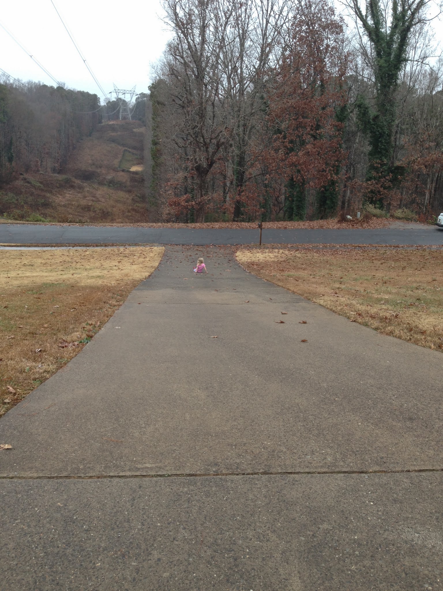 After playing in a puddle from the rain, Savannah decided to take a seat on the wet driveway.