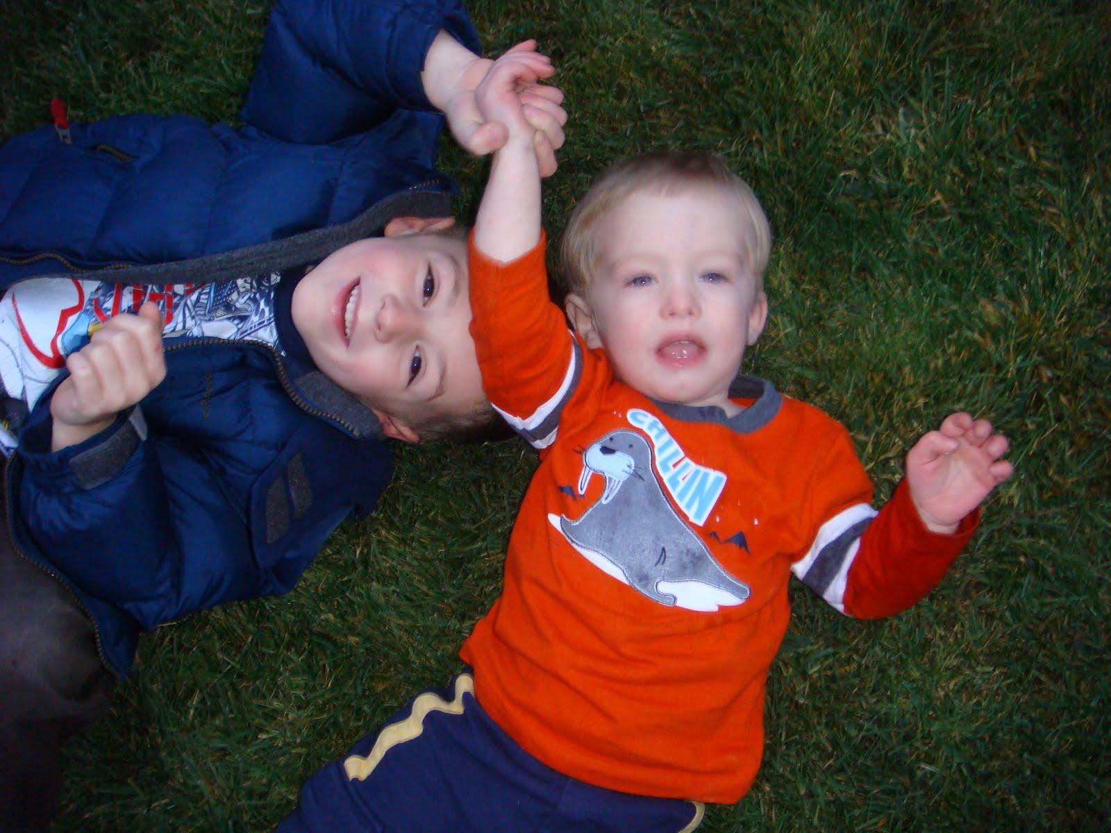The boys playing in Grandma's backyard.