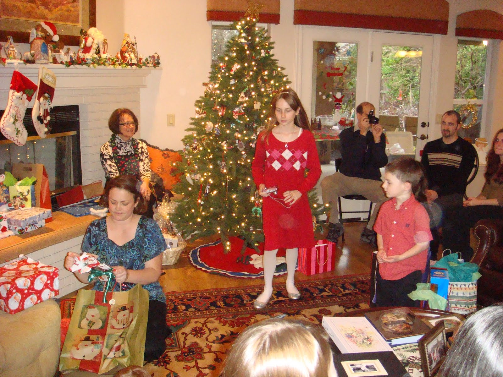 A view of the Christmas party at my parents house with all the relatives in Livermore. This was right as we started opening presents. We had a wonderful meal with prime rib and ham, with yummy salads and desserts. We had a great time and loved to see all the family.