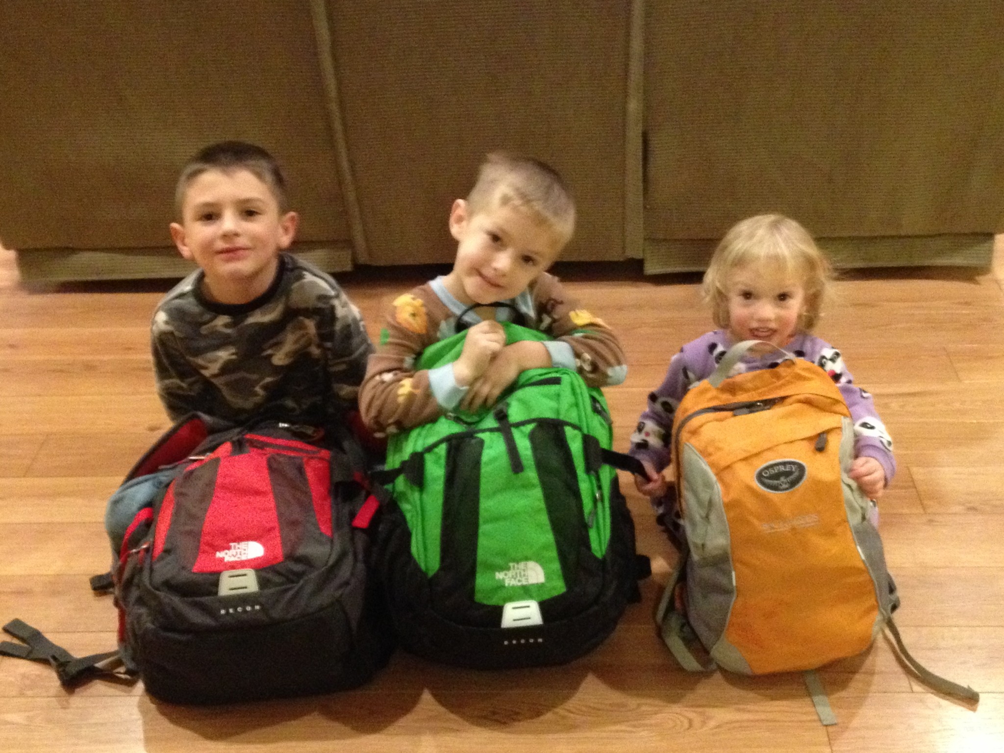 These are our 72-hour kits, bought with our Christmas money. We are now prepared for survival, we hope.