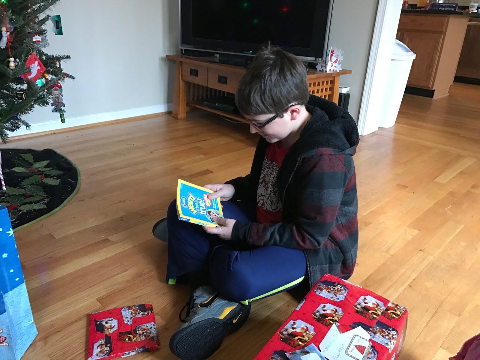 We have continued our tradition of distributing the presents for the kids throughout the month of December. Then on Christmas day, there is one gift under the tree that says: