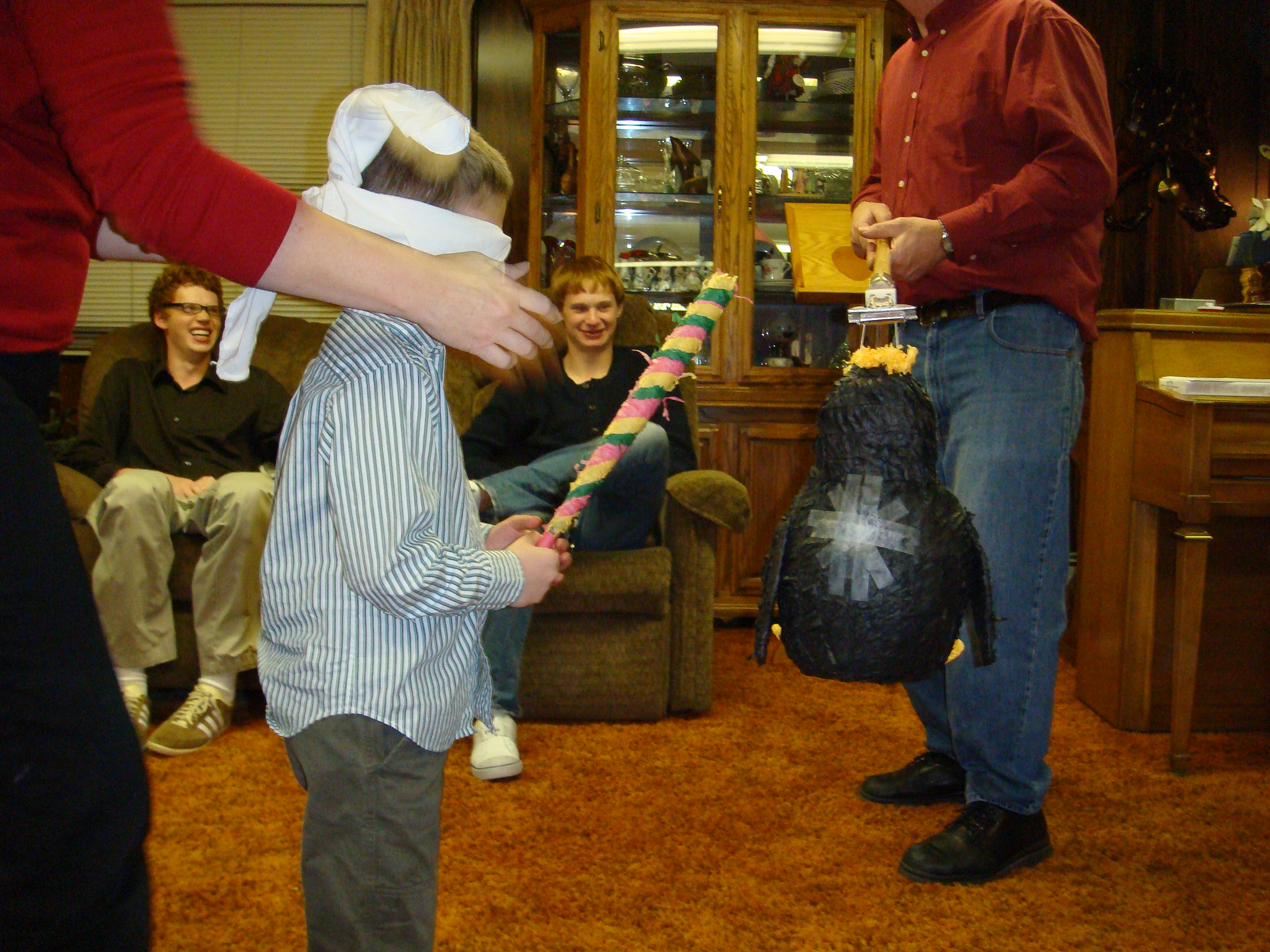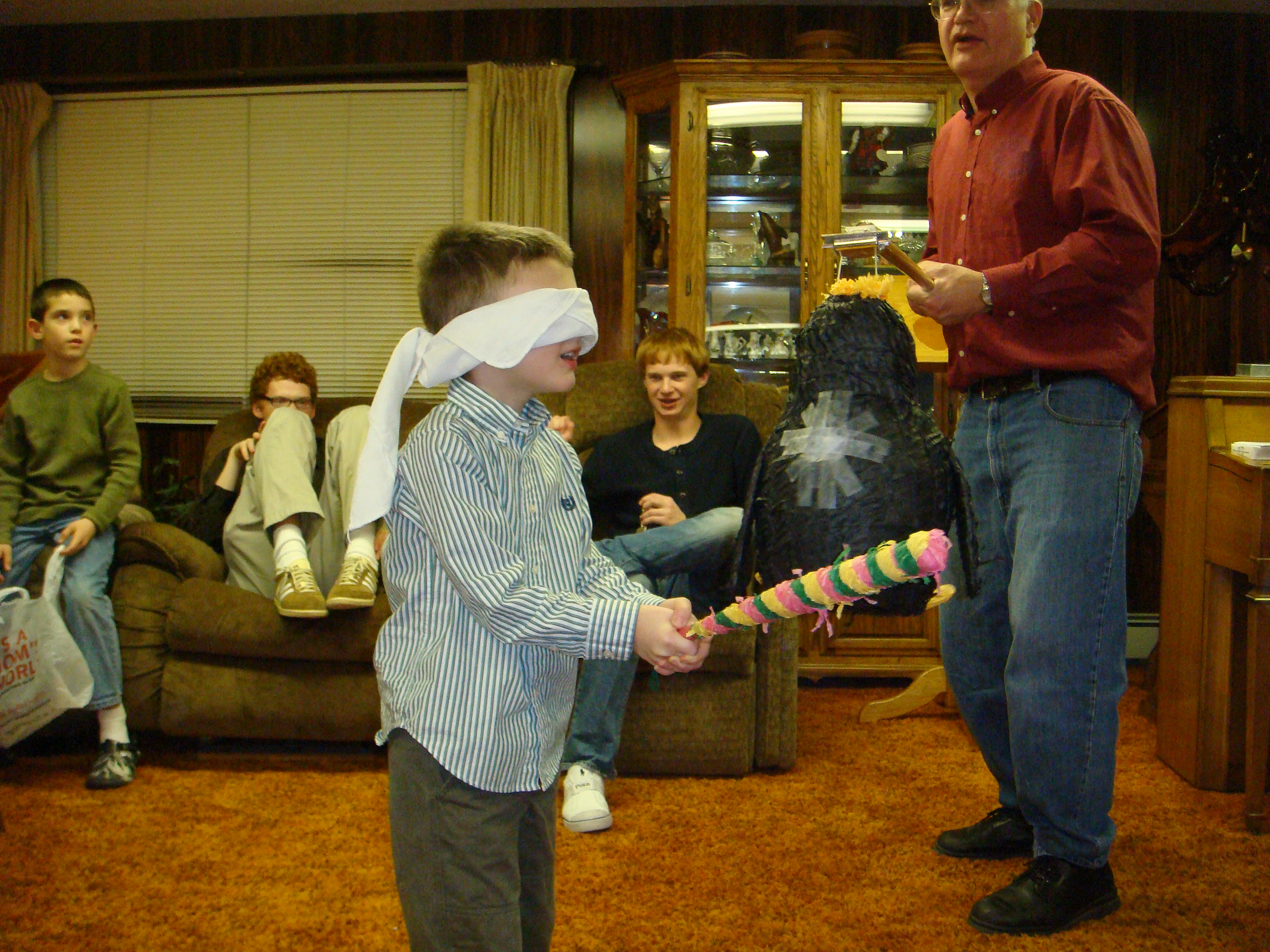 Carson taking a swing at the pinata.