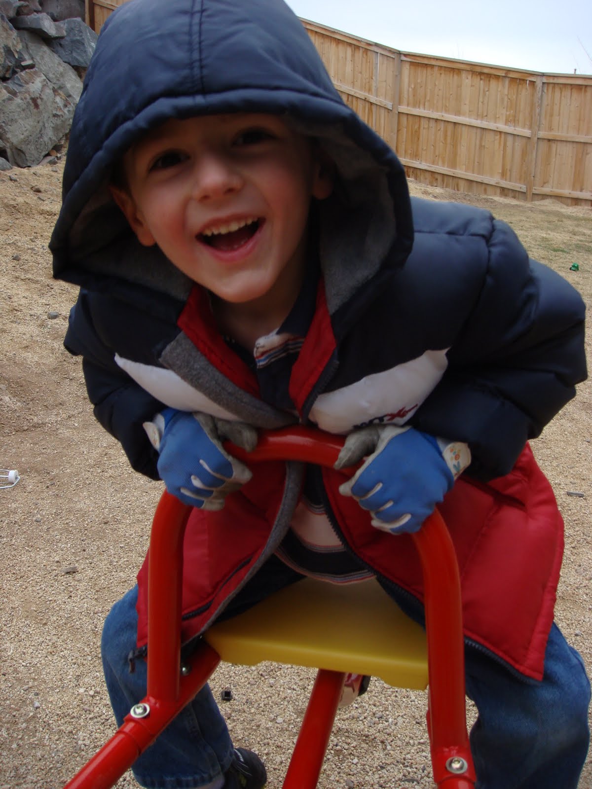 We bought a lot of outdoor play equipment in the last month or so, and Keith has put in lot of time putting it all together and it's almost done. We have an airplane/teeter-totter, a big swinset, and a playhouse that'll eventually be in the backyard (it's in our living room until we have warmer weather).