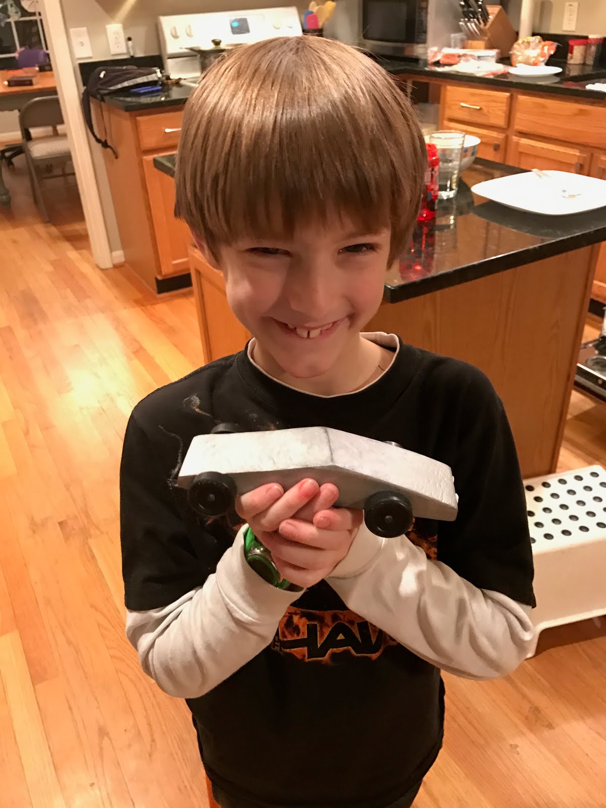 Each year, the Cub Scouts have a Pinewood Derby race. Tucker designed and made his own car and competed. Carson and Savannah also made their own cars for fun.
