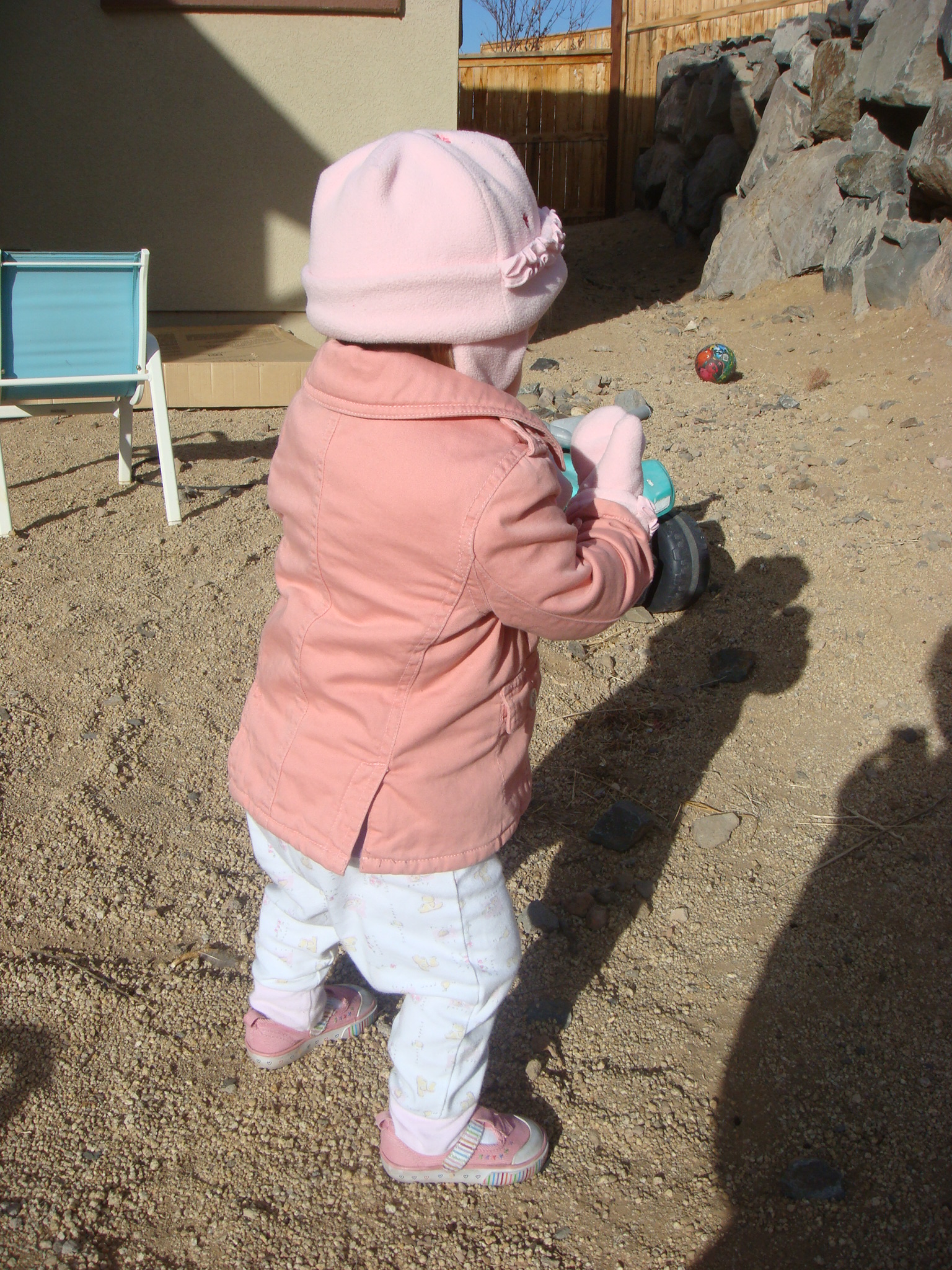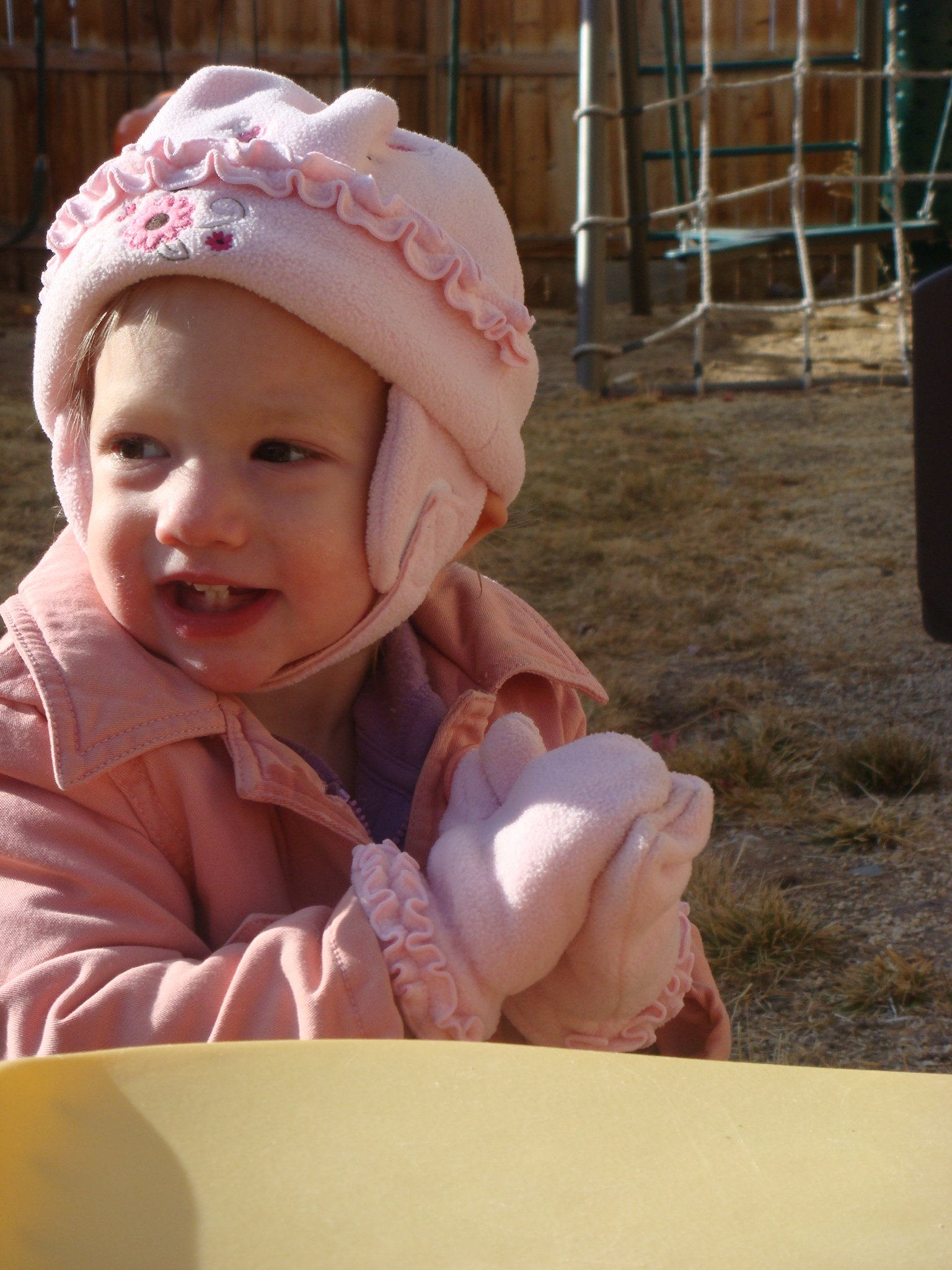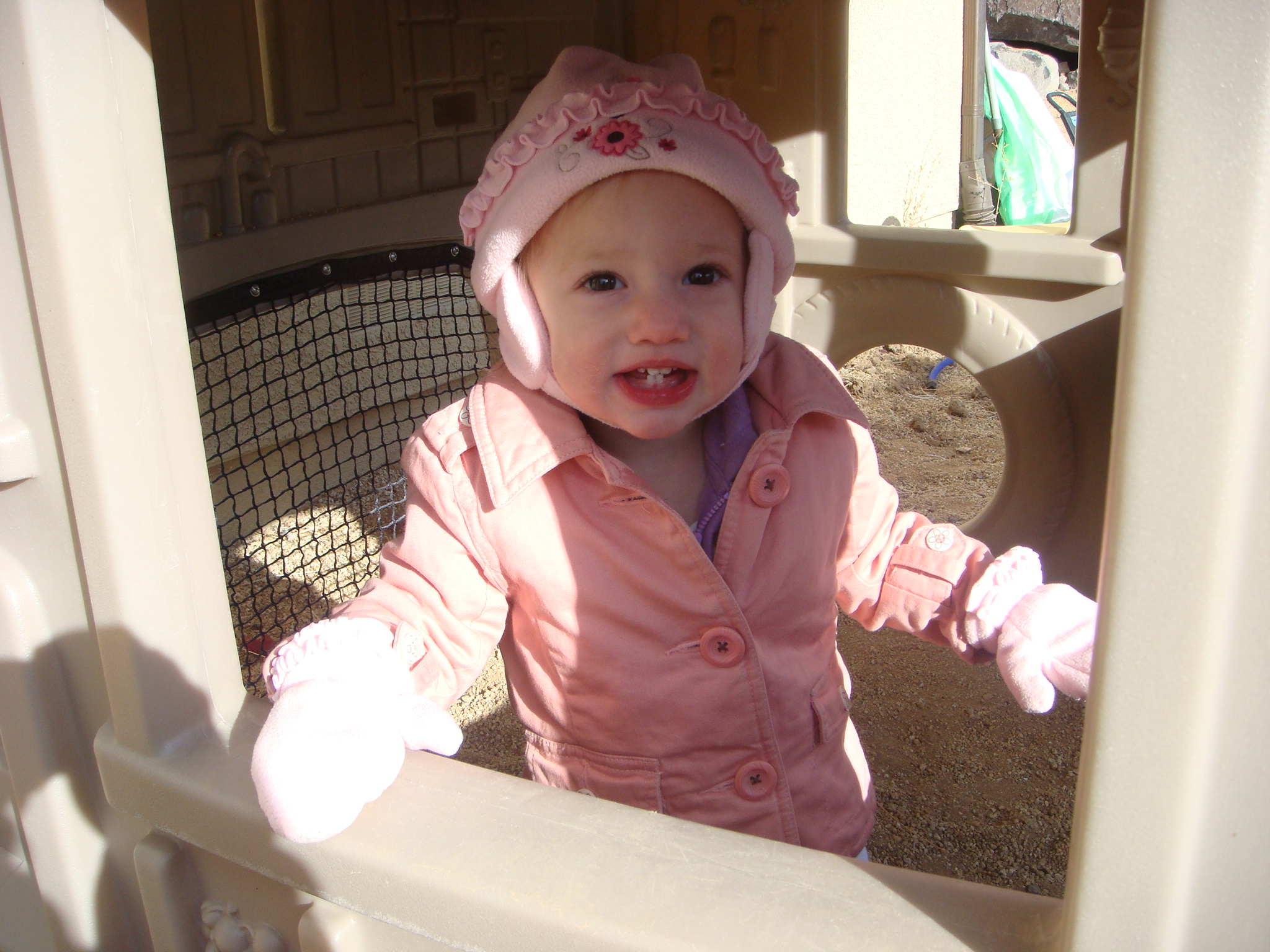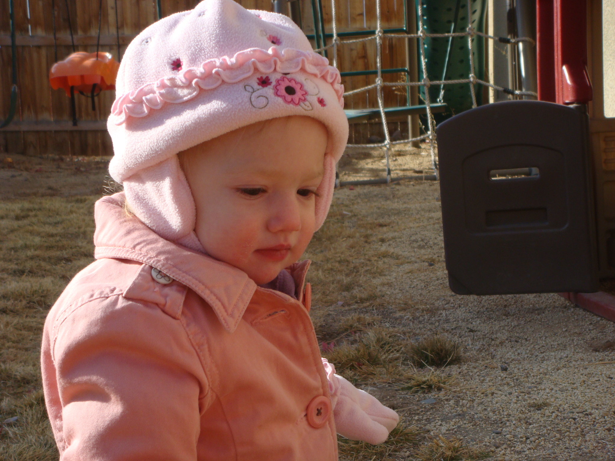 Cutie pink girl in the backyard
