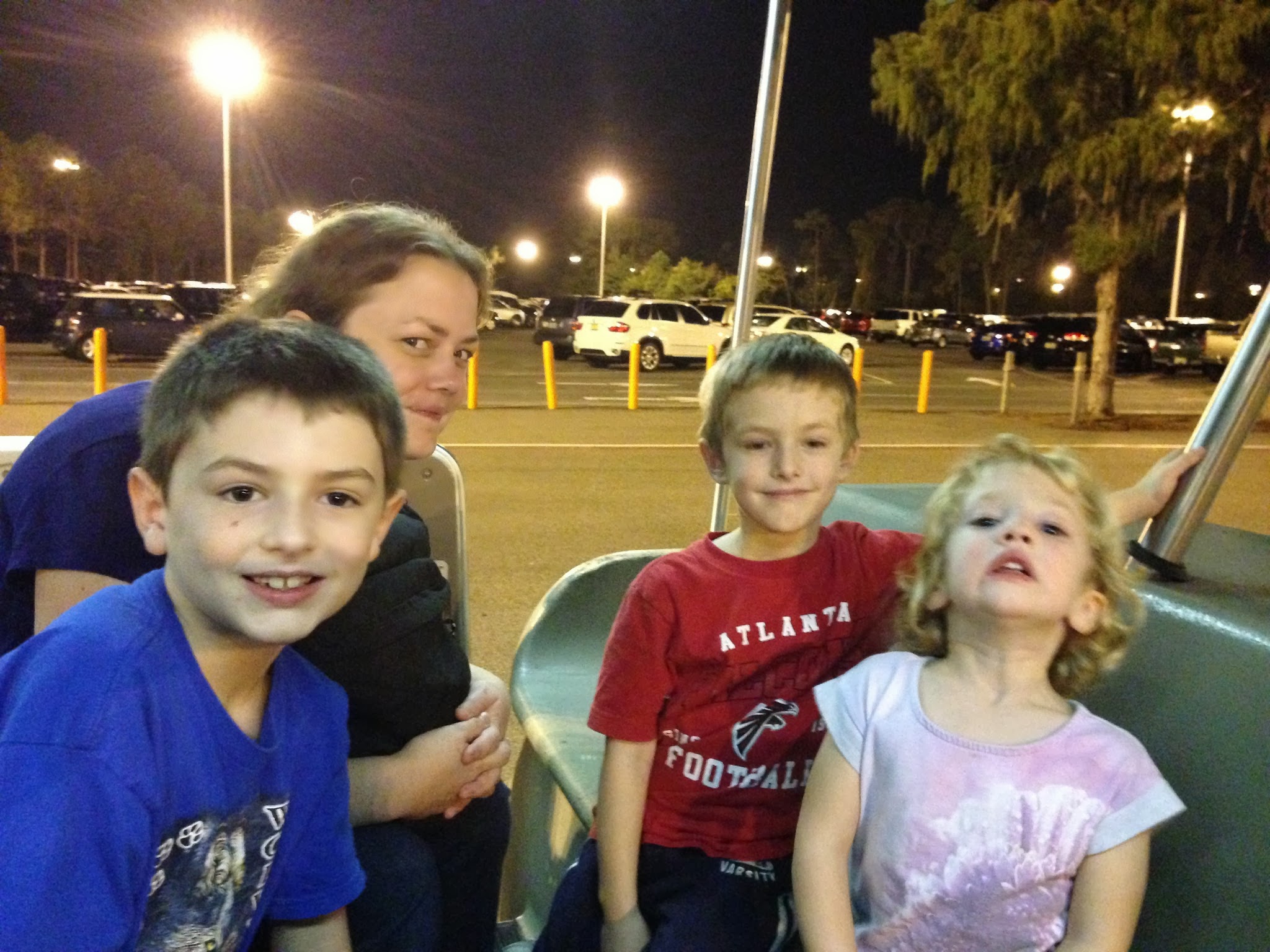 Us waiting on a tram to leave the parking lot to get to the gates......