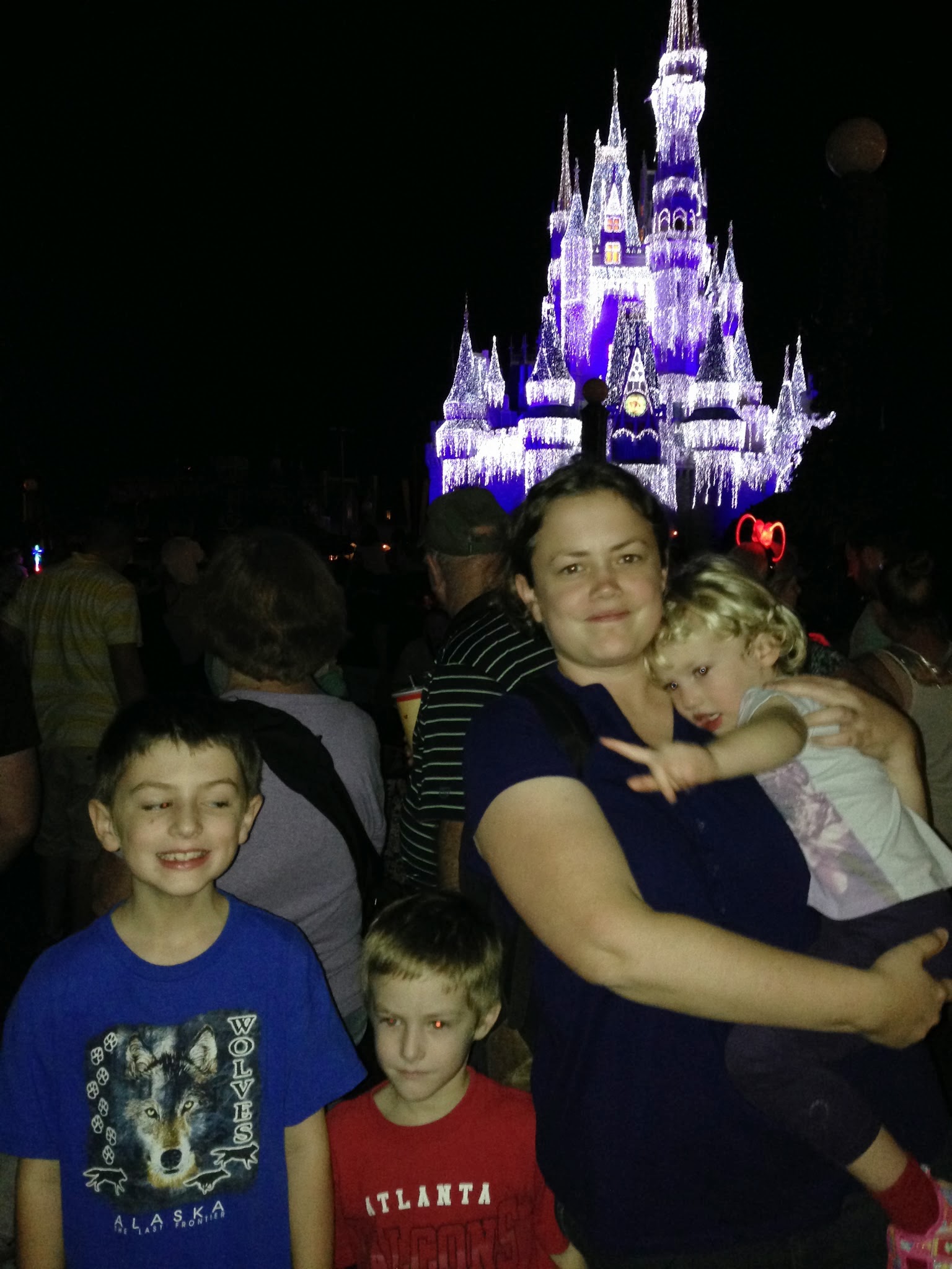 We left Marietta on Saturday around 9:30am and got to Disneyworld around 5:30 that evening. We ate some dinner and went right into the park and after a long journey, maybe 2 hours later, we were watching the parade and also got to see a projection show on the face of the castle. It was really crowded, but really worth it to go at night to see those shows.