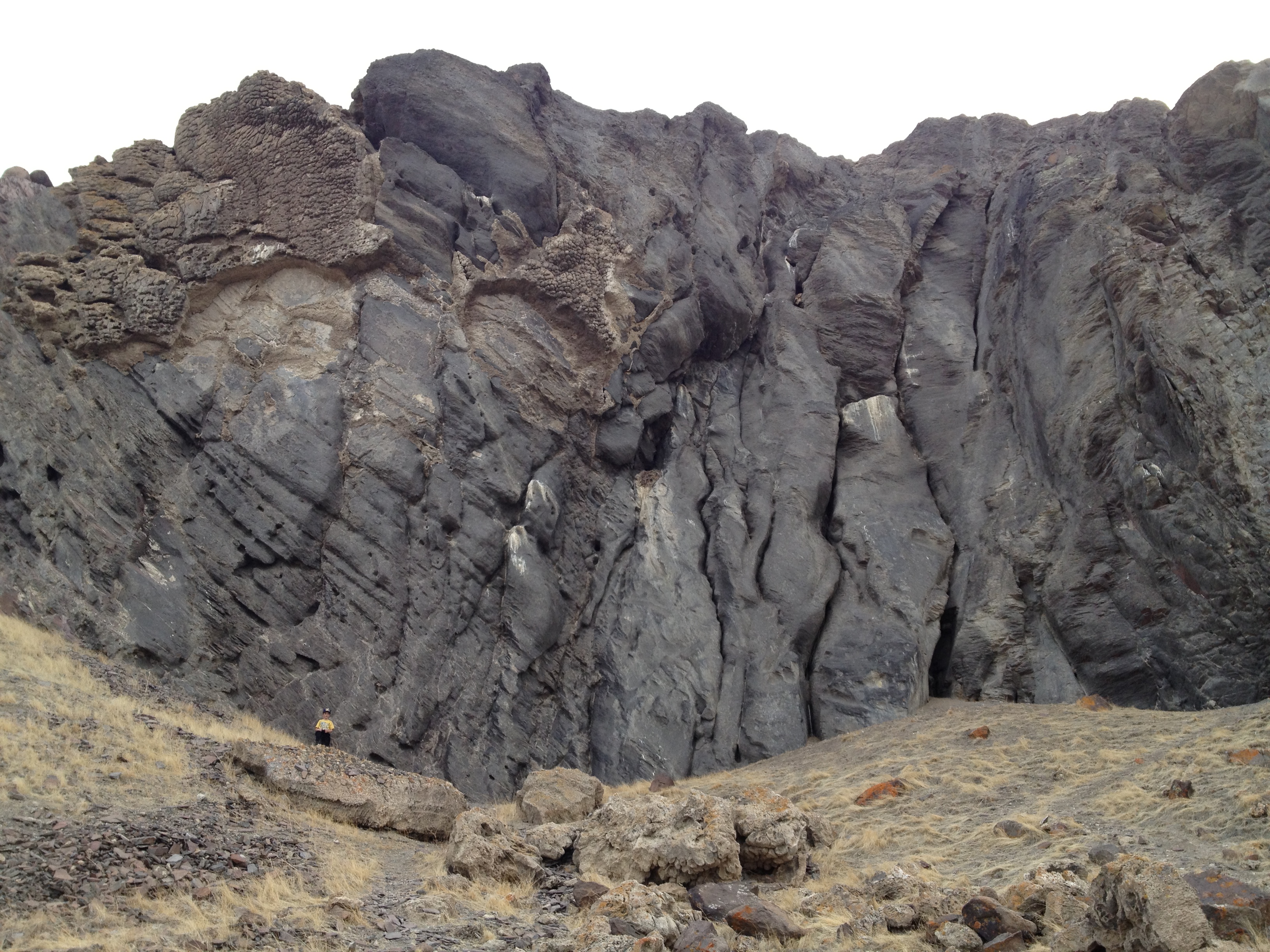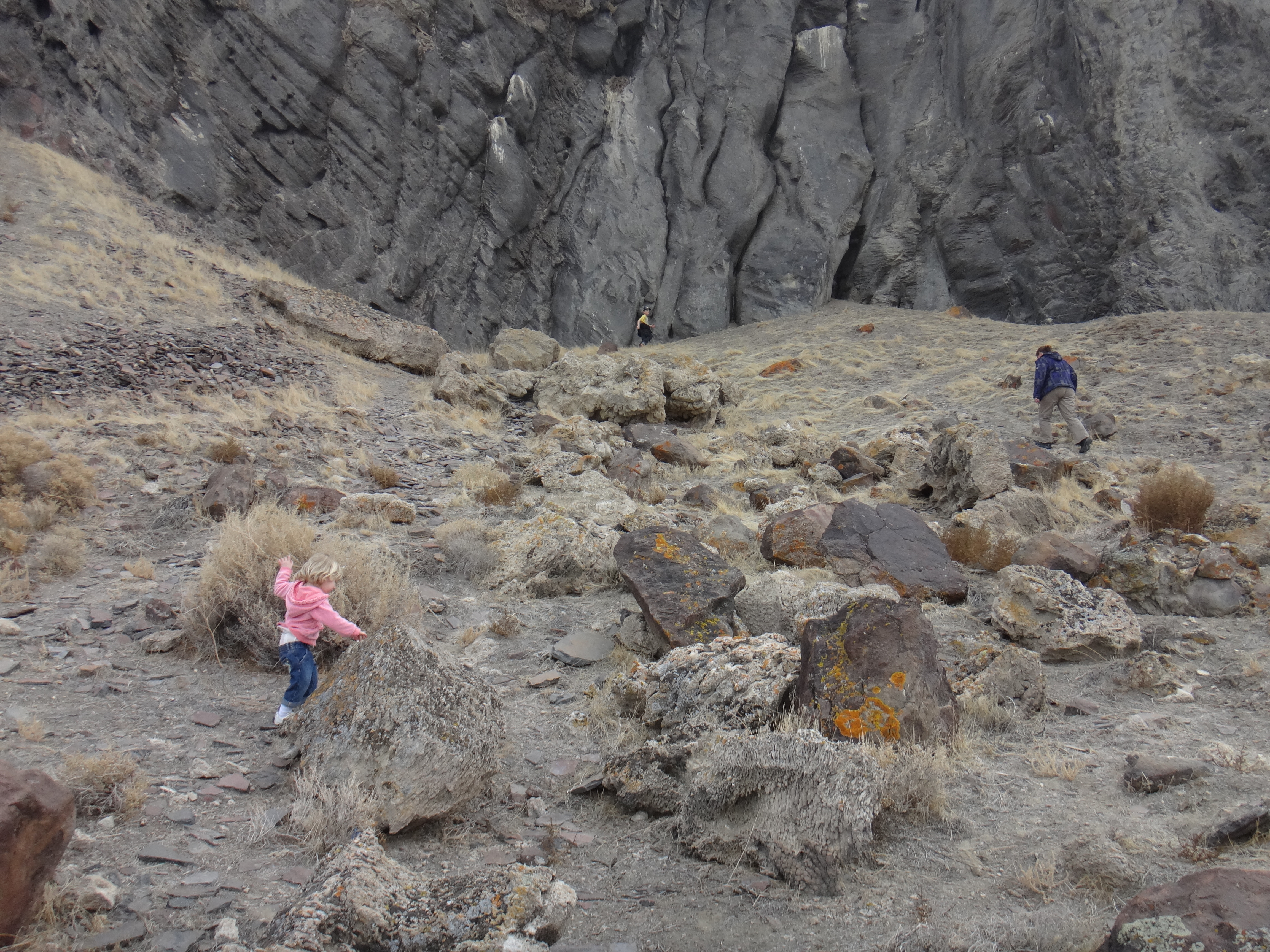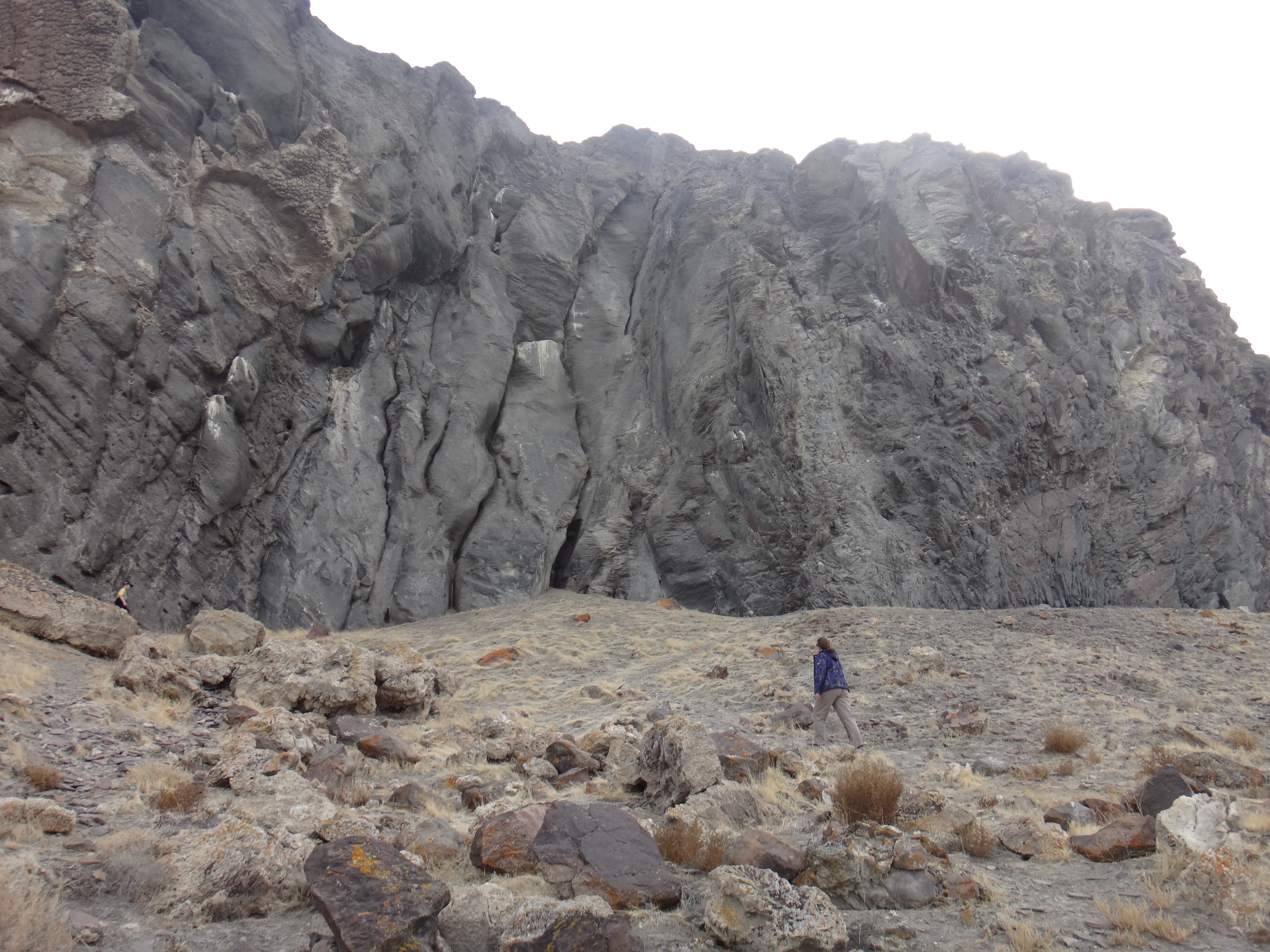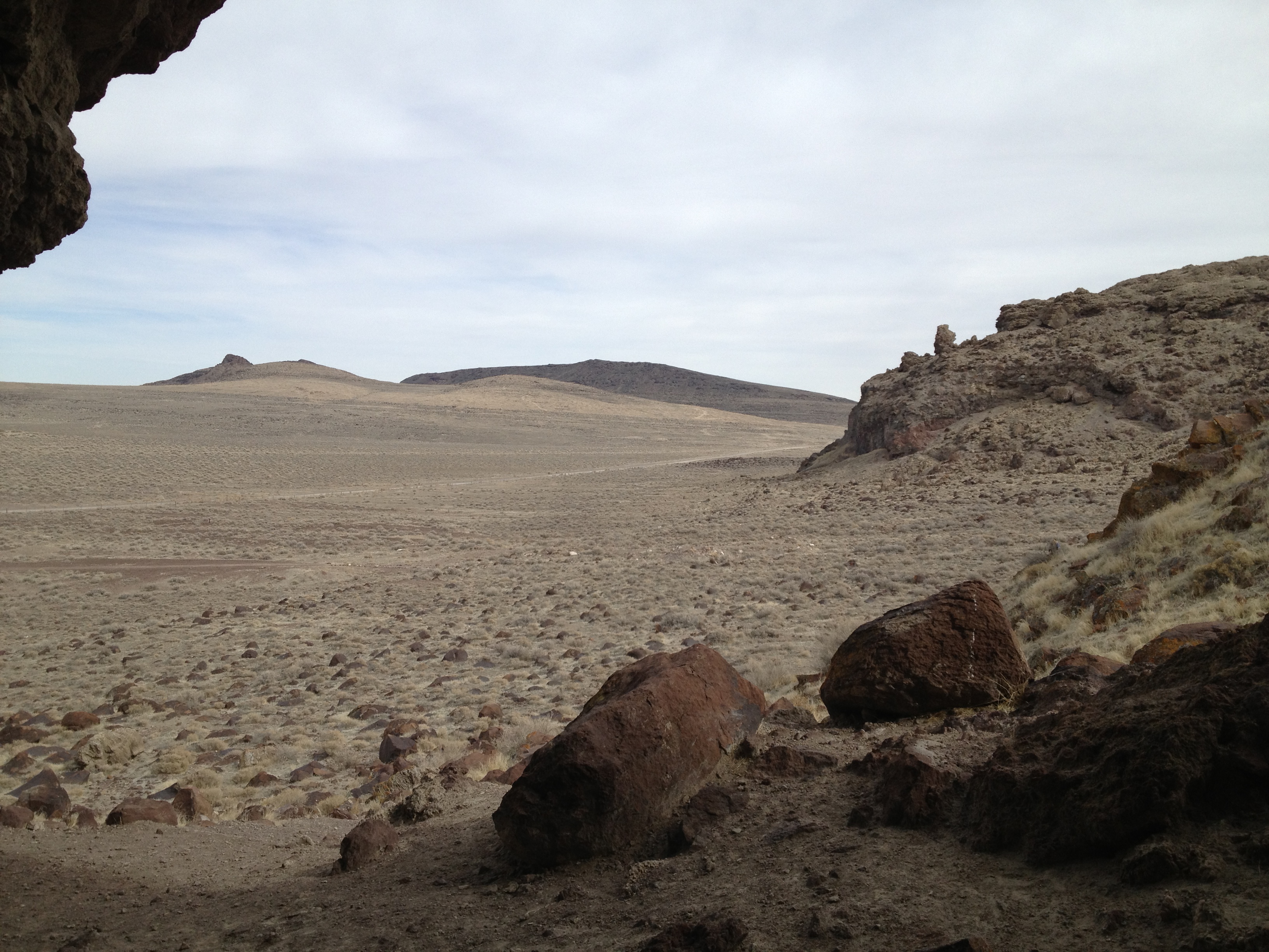 Near 'Burnt Cave'. Looking at the rock formations, as there is a lot of calcification here too, like at Pyramind Lake.