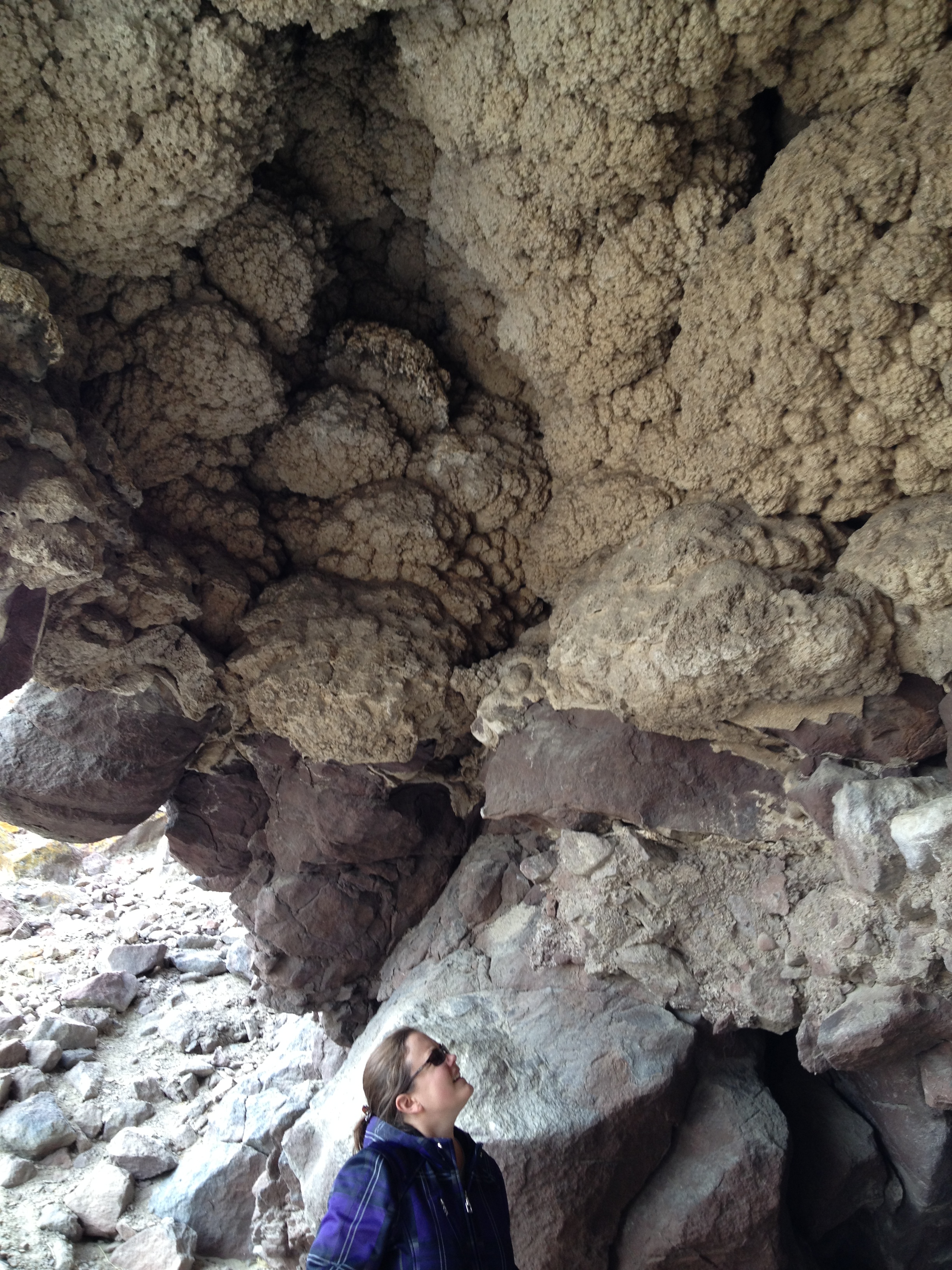 Picnic cave. This 'tufa' stuff is the same stuff we saw at pyramid lake, because this area here was once underwater.