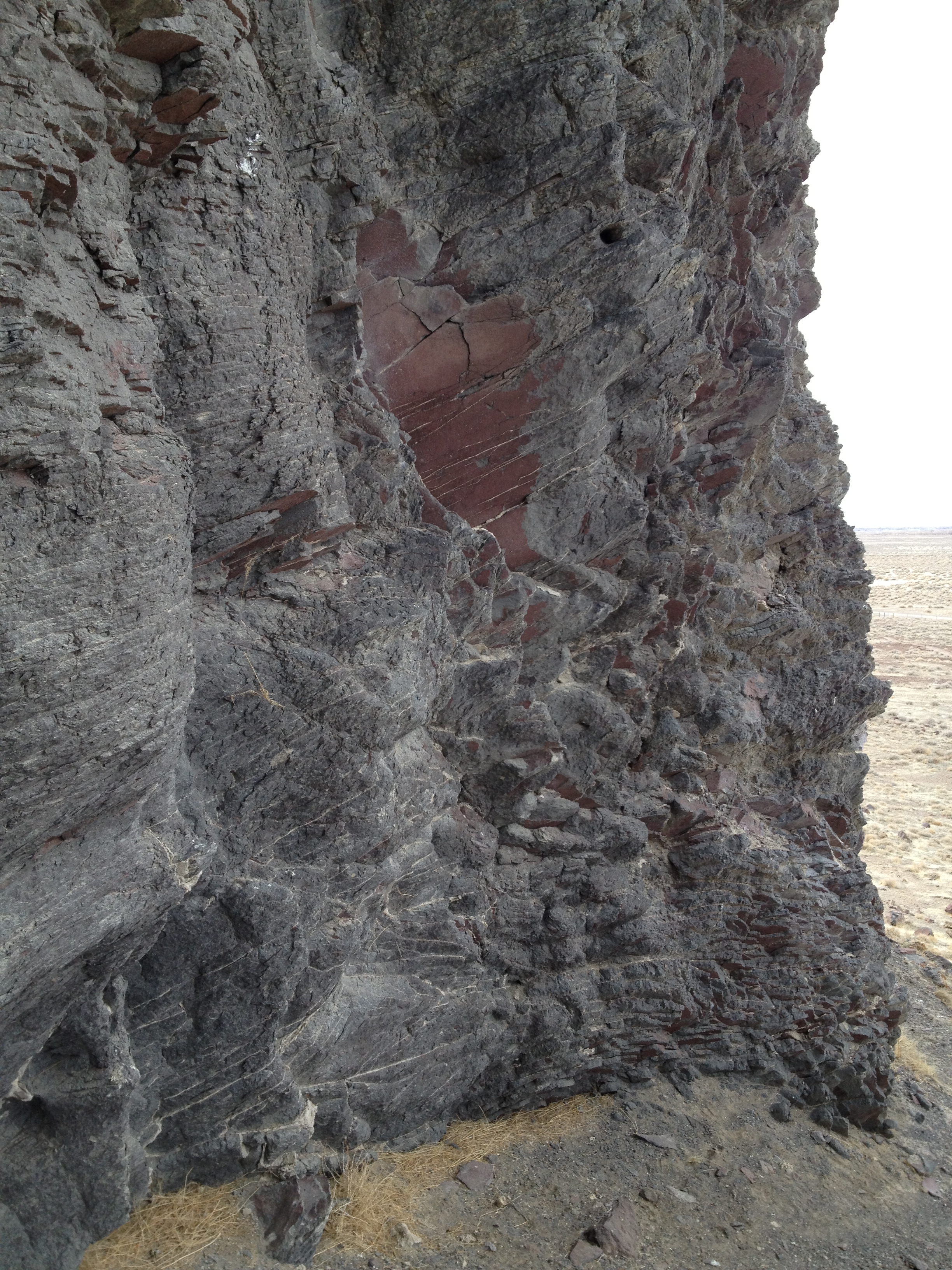 These layers of rock are thin and held together by the calcium deposits that look like cement between the layers.
