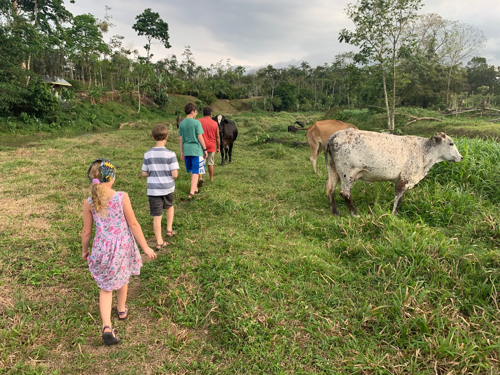 He arrived at the appointed time and he helped us through the barbed-wire fence that separates our yard from his (to keep his cows on his land).