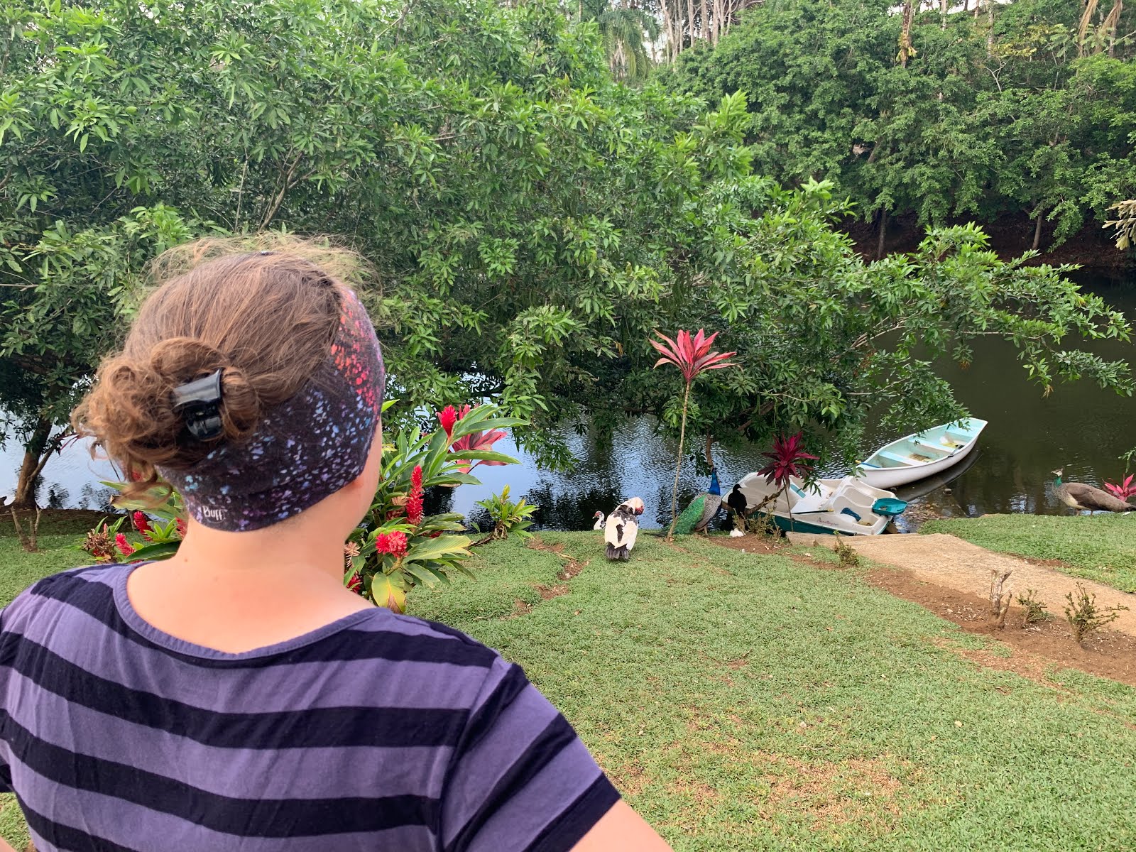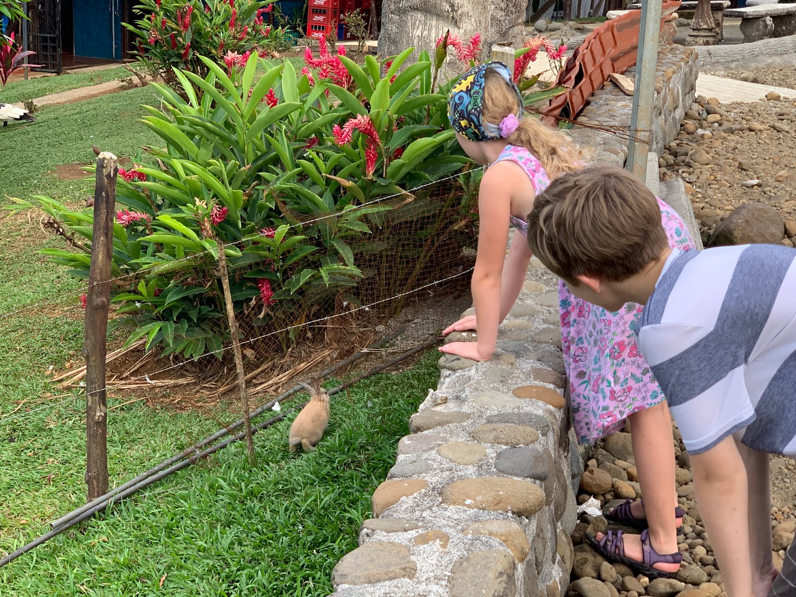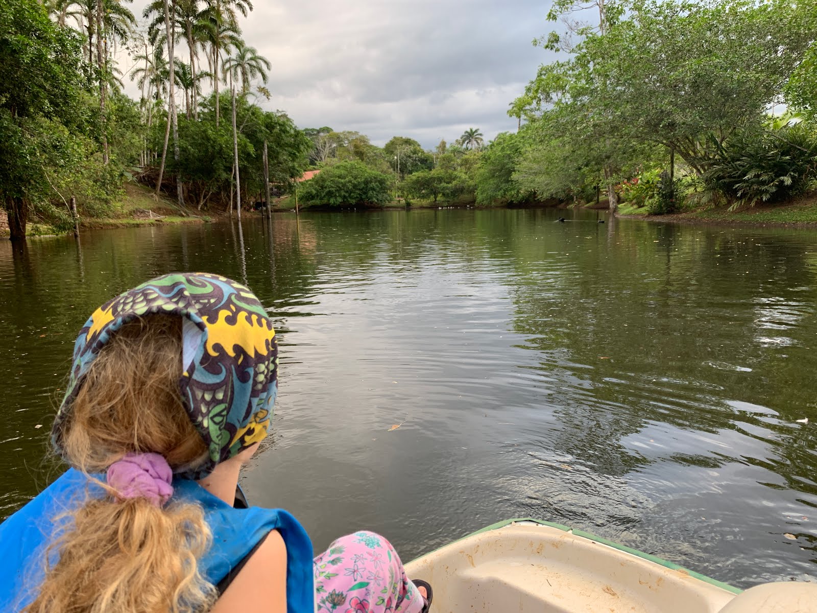 We saw lots of ducks, rabbits, iguanas, chickens, and peacocks.