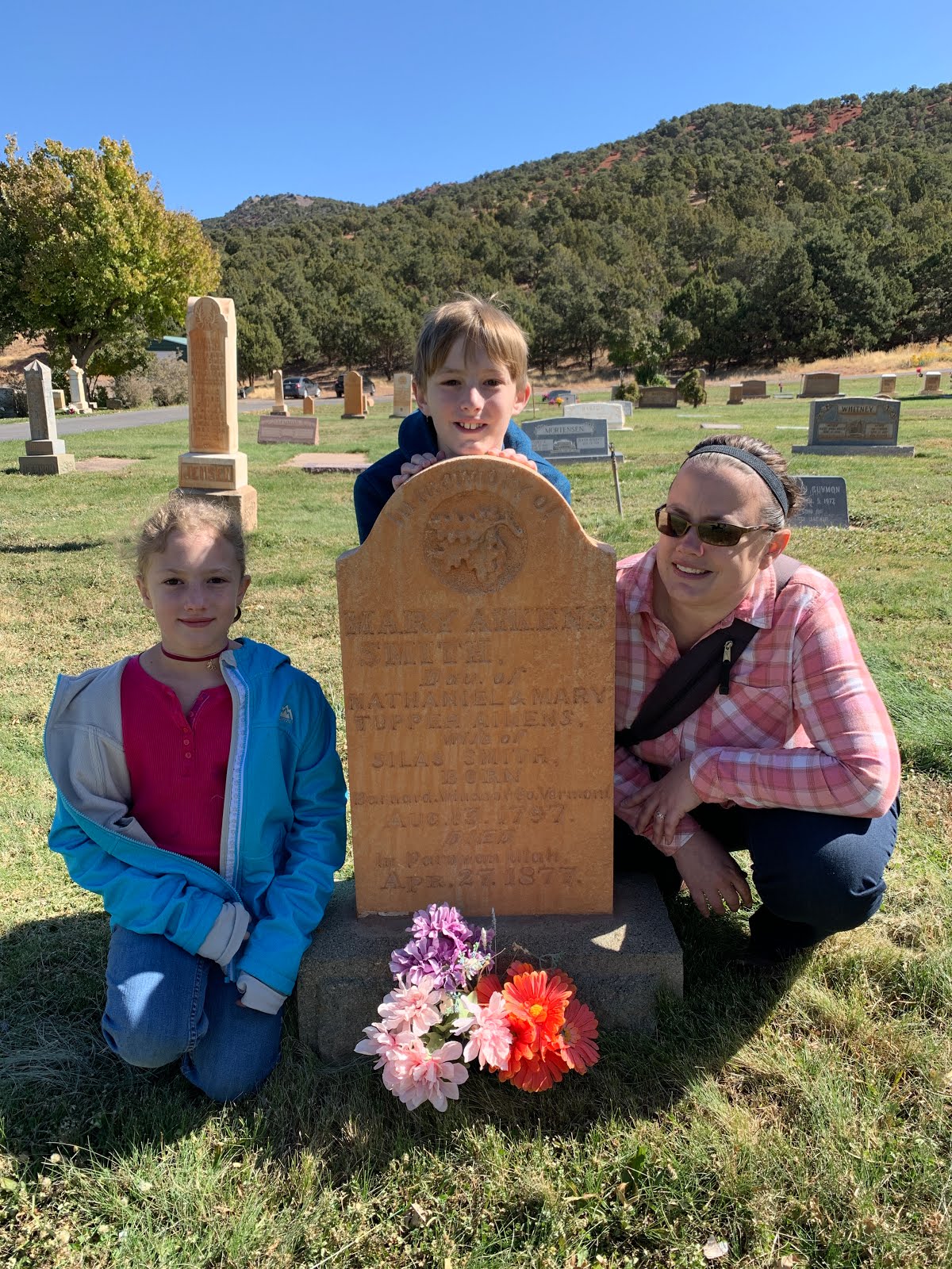 The tombstone of Mary Aikens Smith, my 4th Great Grandmother (above).