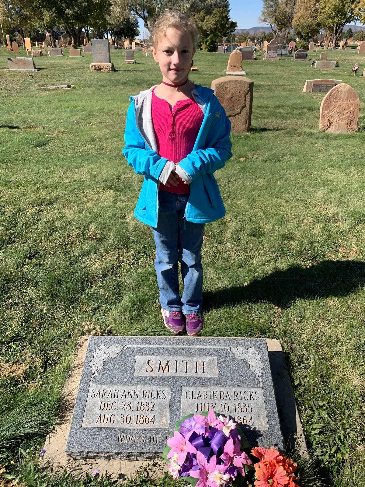 The tombstone of Clarinda Ricks Smith (and her sister). She was my 3rd Great Grandmother.