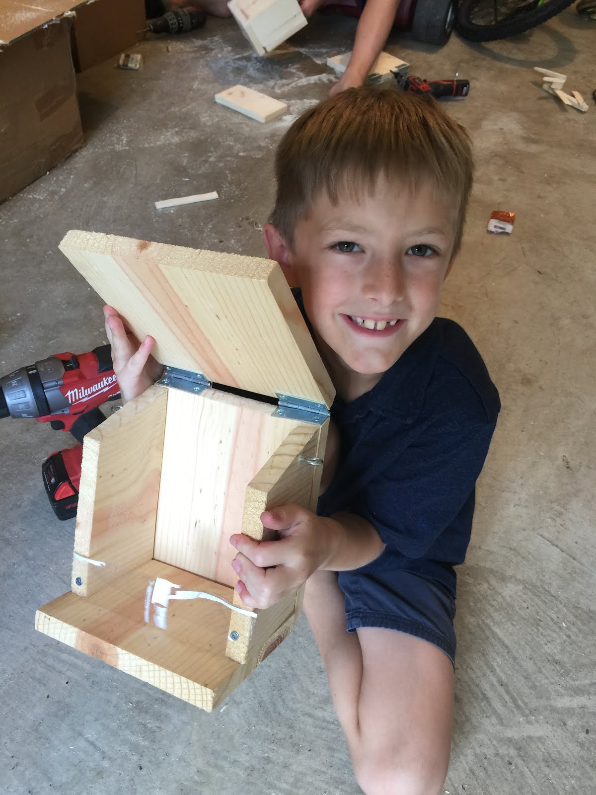 A month or two ago, the kids and I decided to do some woodwork. Carson made his own lockbox / treasure box and Tucker and Savannah made bird feeders. They all turned out pretty well.