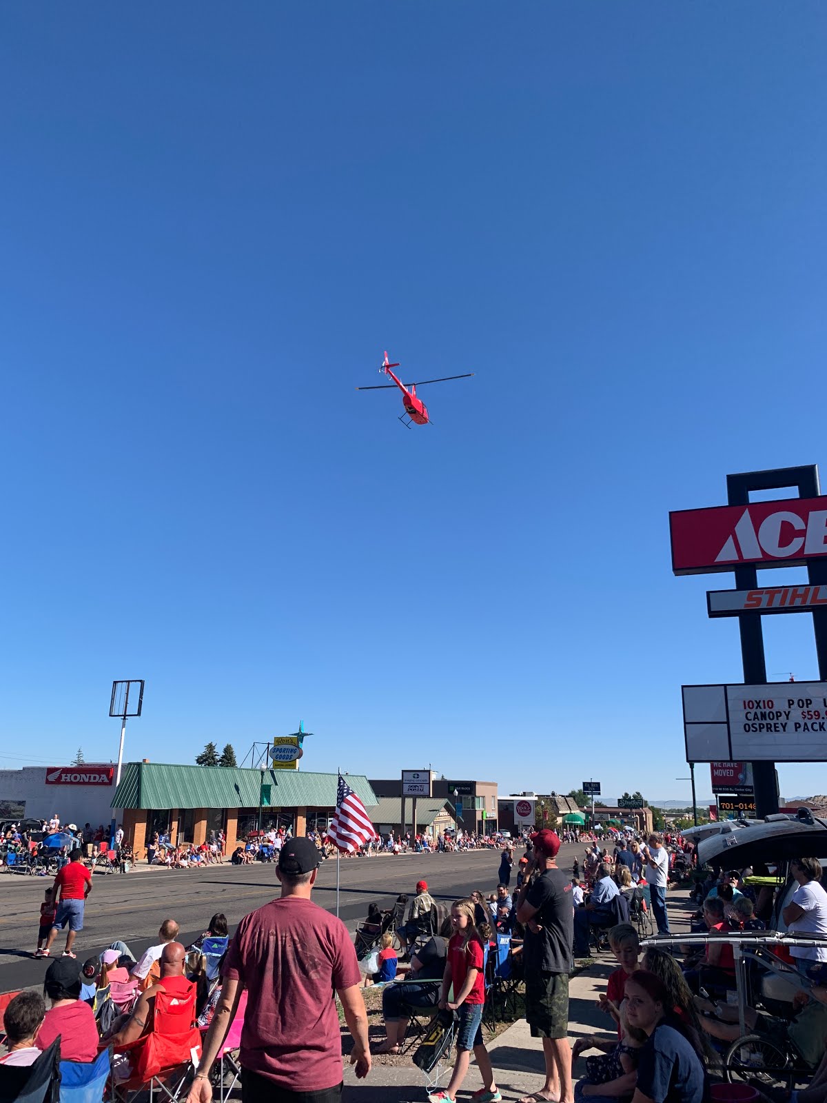 SUU Aviation school flew a helicopter to start off the parade.