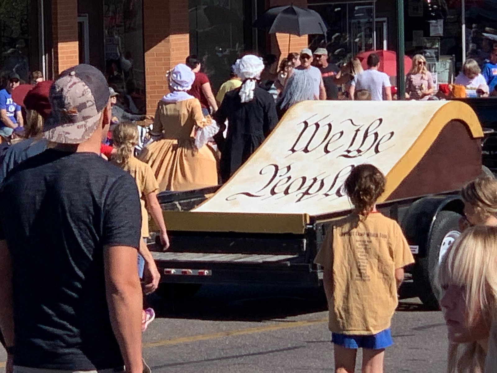 Tucker and Savannah were part of the Constitution float and they passed out copies of the Constitution to the crowd.