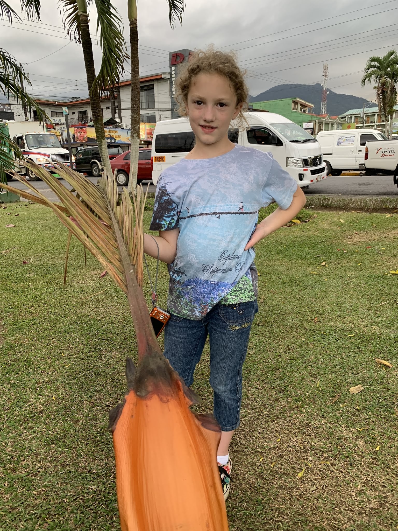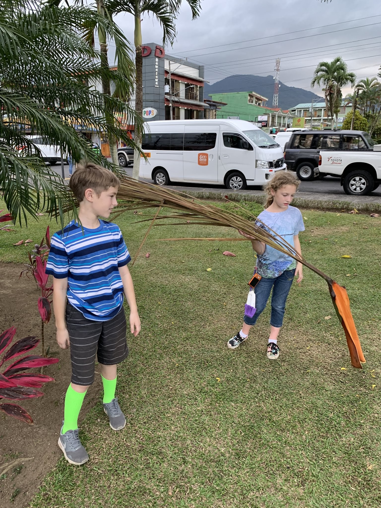 In La Fortuna, playing around with fallen palm fronds.