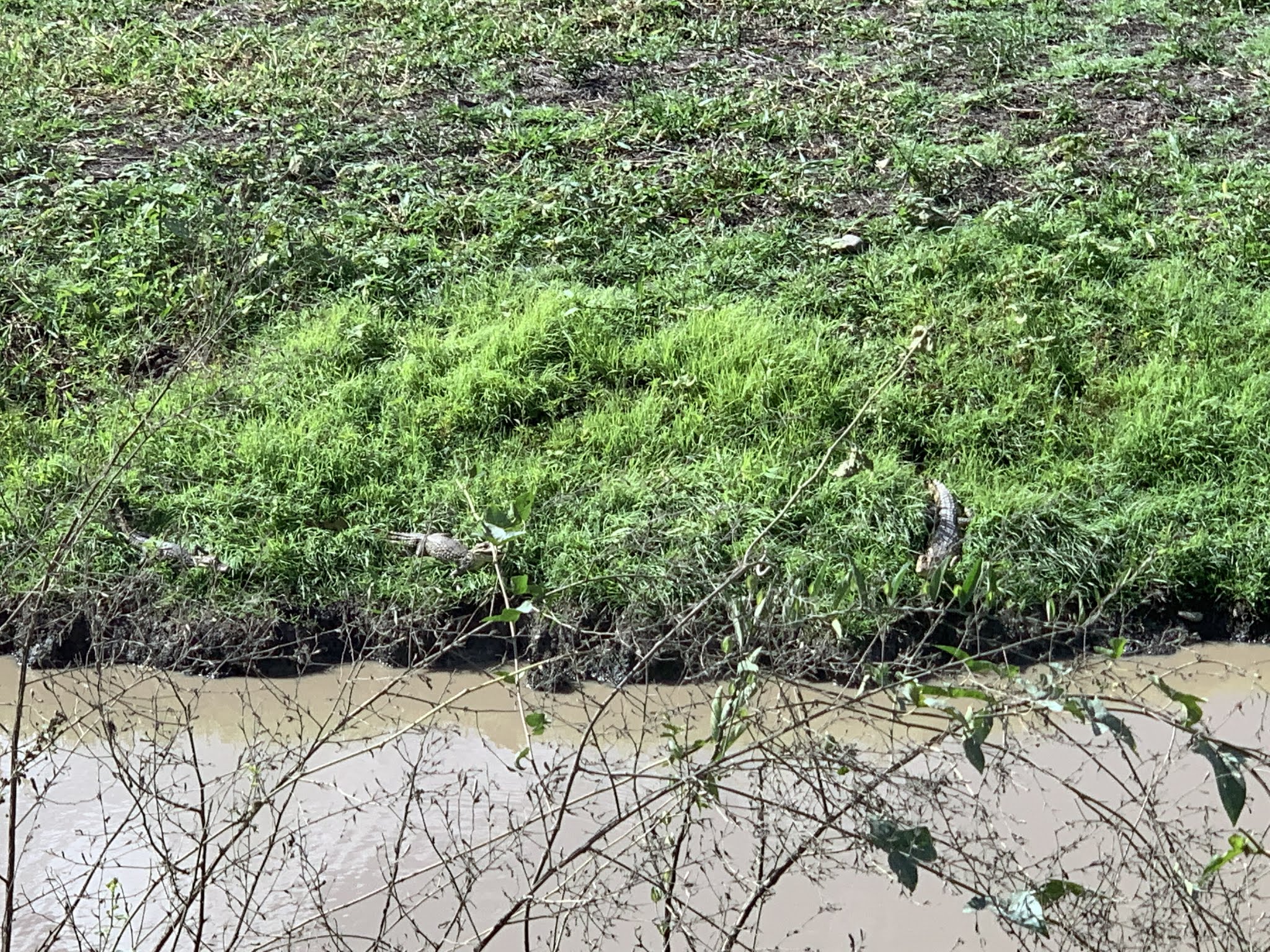 two caimans in the grass