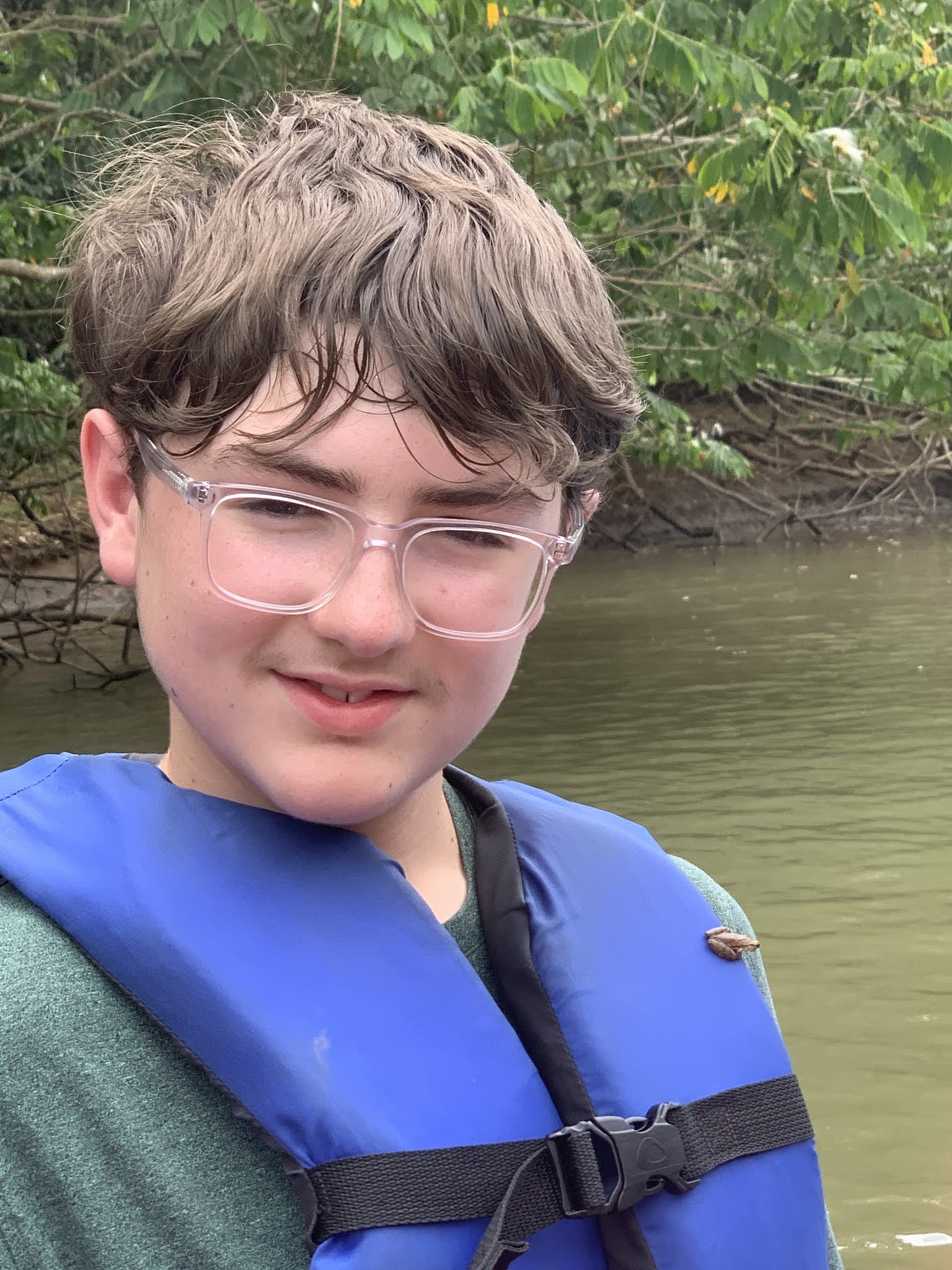 then he sat on Carson's jacket until we got to shore.