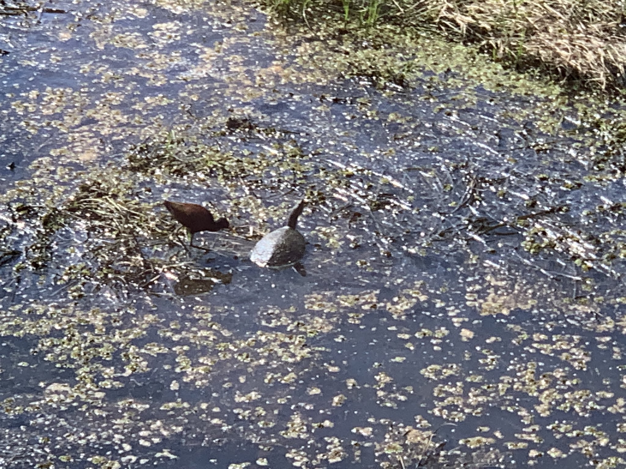 A turtle and a northern Jacana.