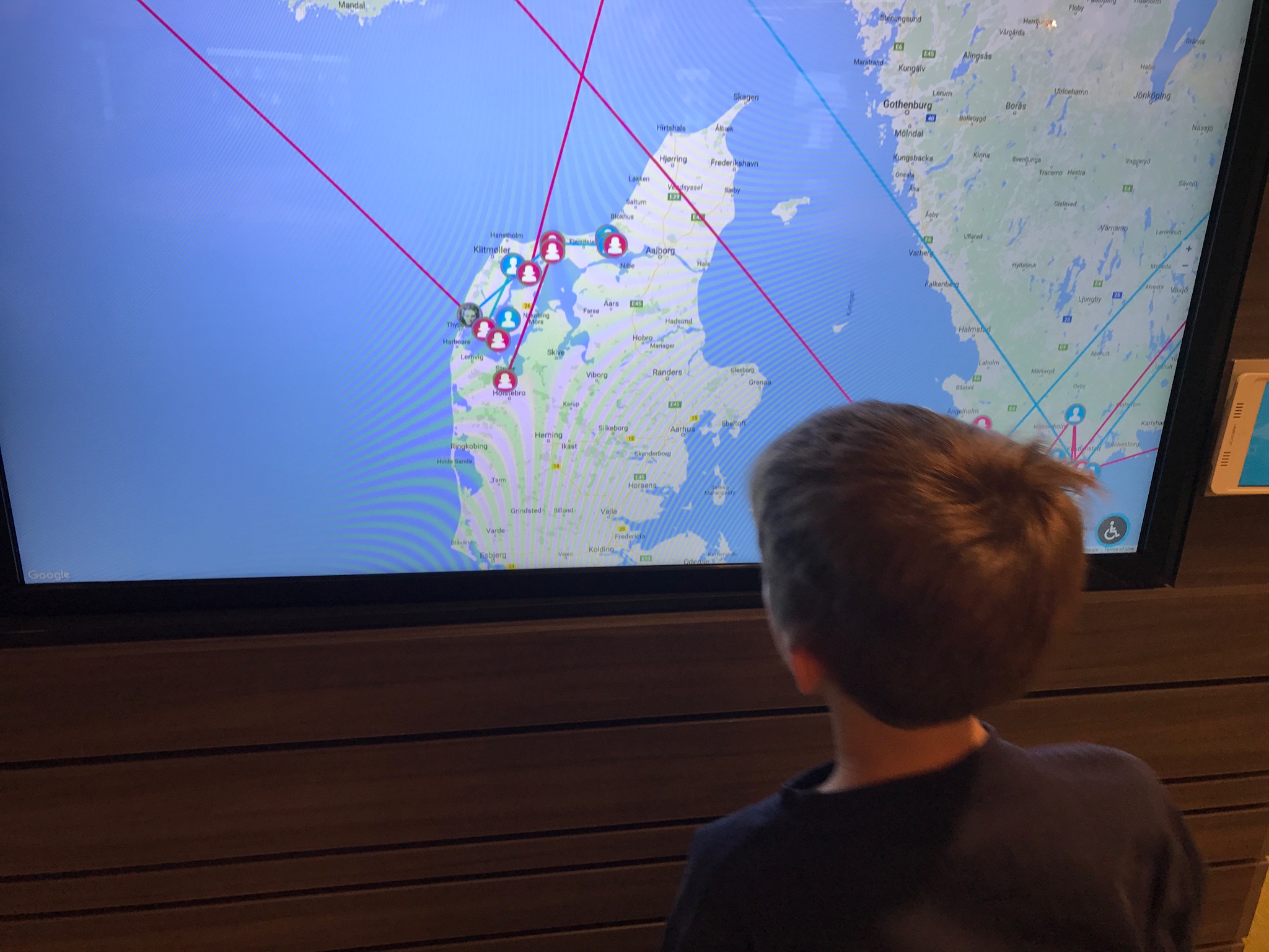 Tucker looking at where his ancestors came from at the Family History Discovery Center near Temple Square
