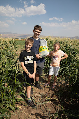 They have 'U-pick' sweet corn, so the kids went out into the fields with Grandpa Gene to pick out some corn, then we had them for dinner that night.