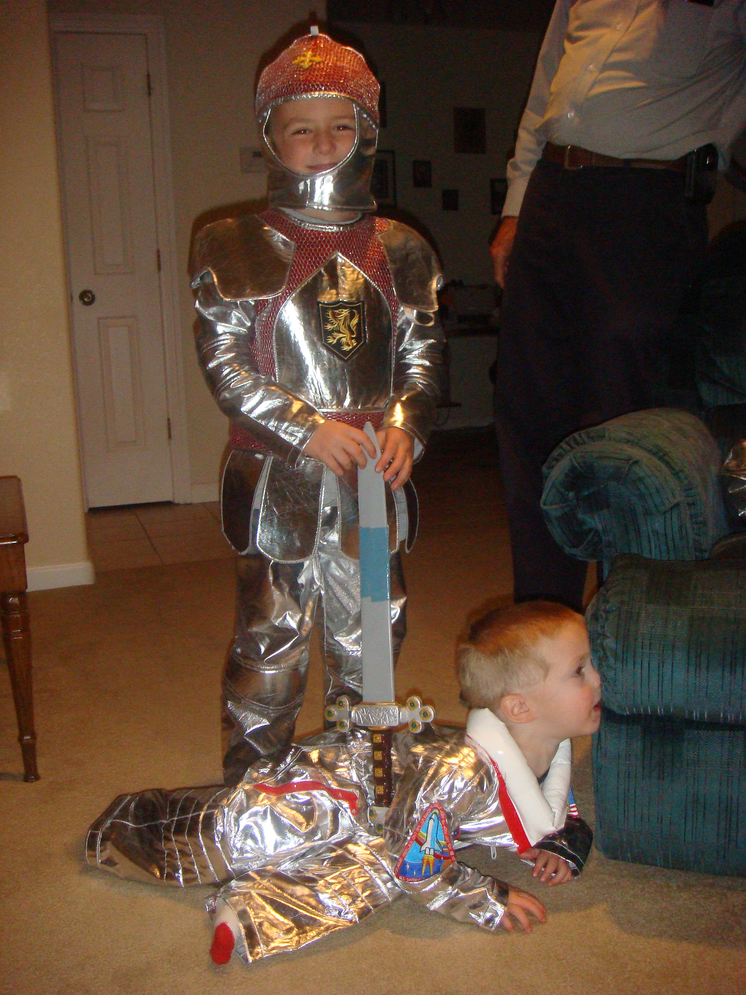 Love the costumes - such a cool idea for Carson to be a knight! That astronaut one is way cool, too. So sad he didn't want to wear it. Where did you get the costumes? The don't look like the typical cheap ones you find at the supermarket or whatever. That bug is weird and Savannah is more adorable in each picture I see!
