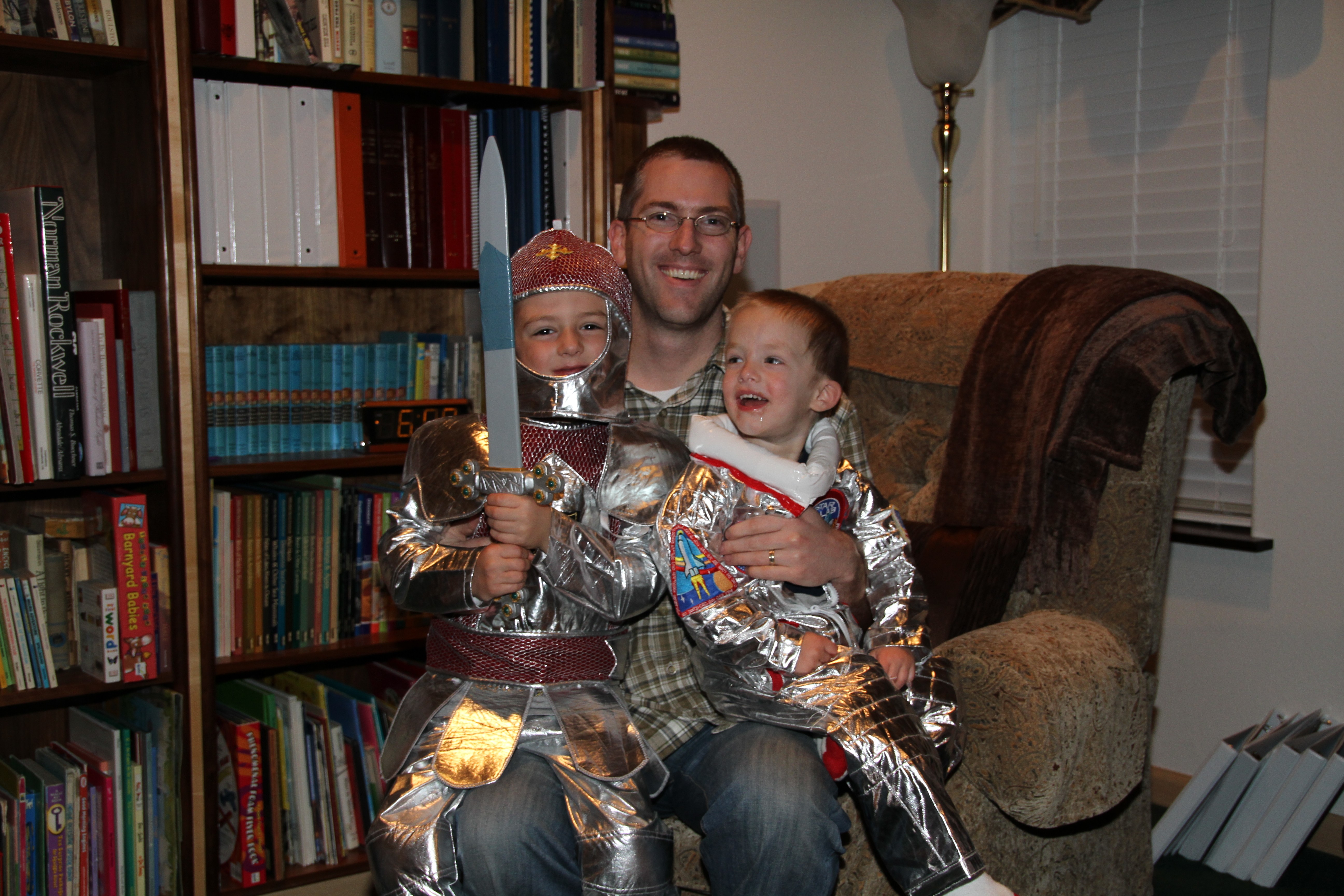 And this is Carson and Tucker with Keith just before going trick-or-treating. Tucker has this way-cool astronaut costume.....